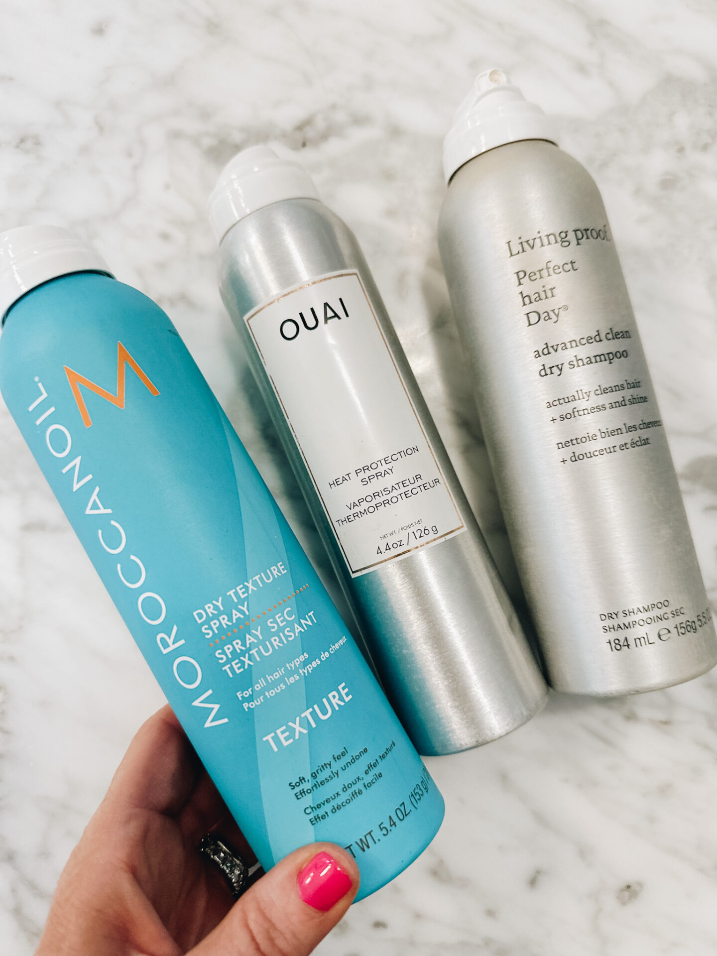 Moroccan Oil Dry Texture Spray [$30] + Living Proof Advanced Clean Dry Shampoo [$36] + Ouai Heat Protectant Spray | Having a hair issue? These three go-to styling essentials have been saving me lately. Easily get rid of any greasiness with the Living Proof Dry Shampoo (works like magic = trust me), truly makes my hair look refreshed and clean- even when its not! Before I use any hot hair tools, I ALWAYS like to prep the hair with heat protectant spray … totally prevents heat damage! And then of course finish it off by adding dry texture spray to make sure your hair stays bouncy and voluminous all throughout the day [my secret hair product I swear by]