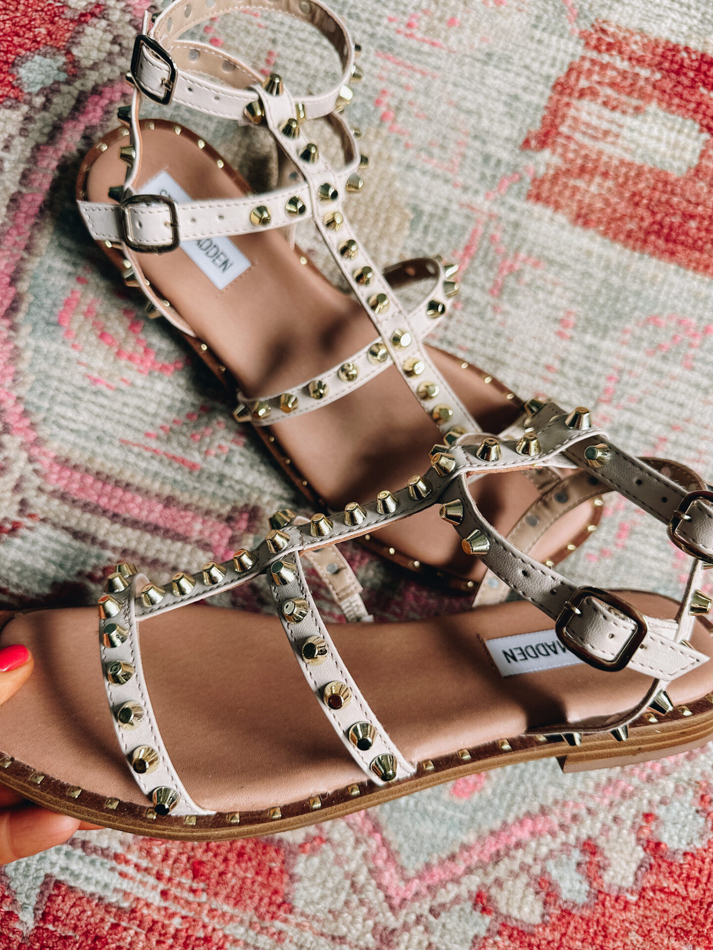 Steve Madden Studded Sunnie Sandals [run TTS/just $53] | So nice I bought them twice… these studded sandals are super cute, affordable and a great fashionable option that are comfy as well. And of course they spice up a simple summer sandal with the gold studded detail!