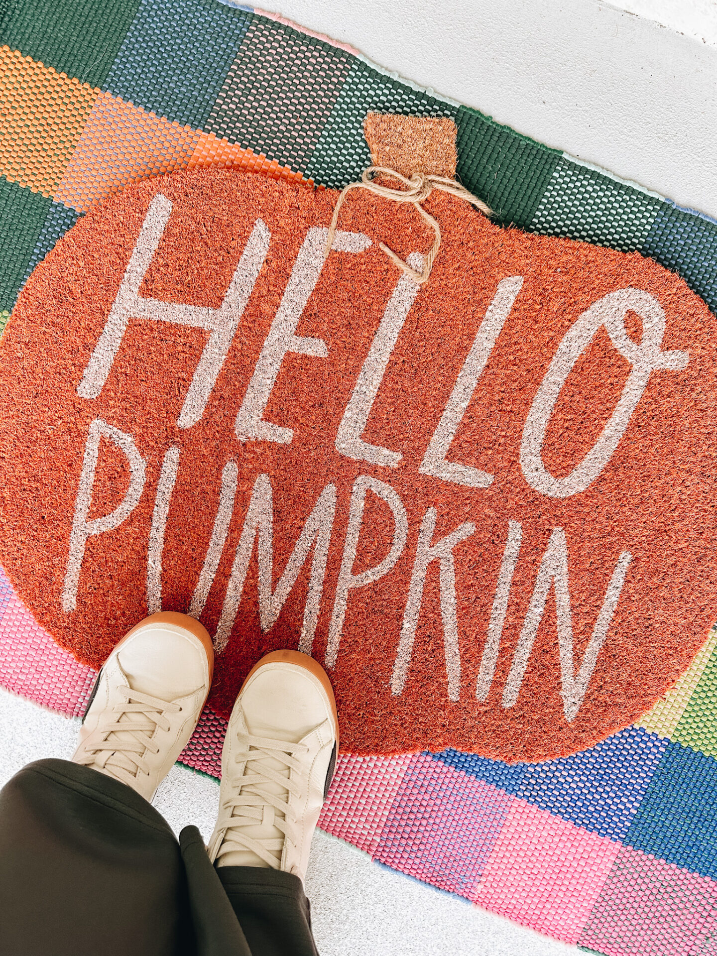 Hello Pumpkin Doormat [$38] | Give them a little fun when they get to your house with this fun fall doormat that can be used ALL season long! A festive way to welcome guests and spruce up your entryway… incorporate a fun pop of color underneath with this checkerbord mat, too.