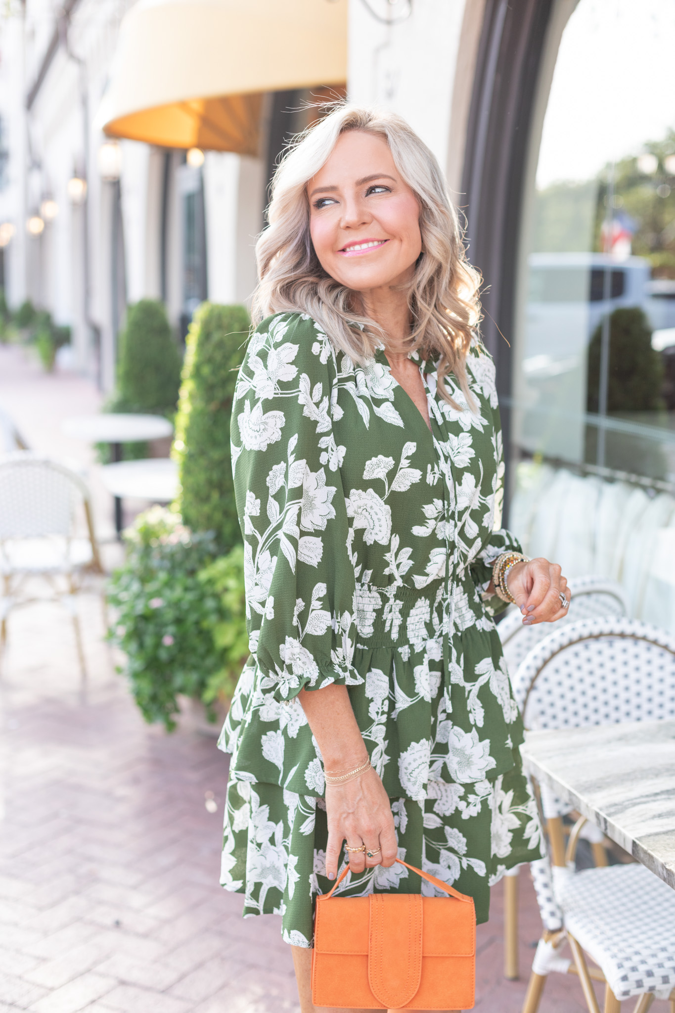 I always say you need a few great dresses in your fall wardrobe for all the events + occasions and his one delivers in all the ways! With its tiered bodice [lined as well], super flattering smocked waist detail and tie neck accent, it’s a stunner in a gorgeous olive green + ivory colorway. [available in sizes xsmall – xlarge $66]