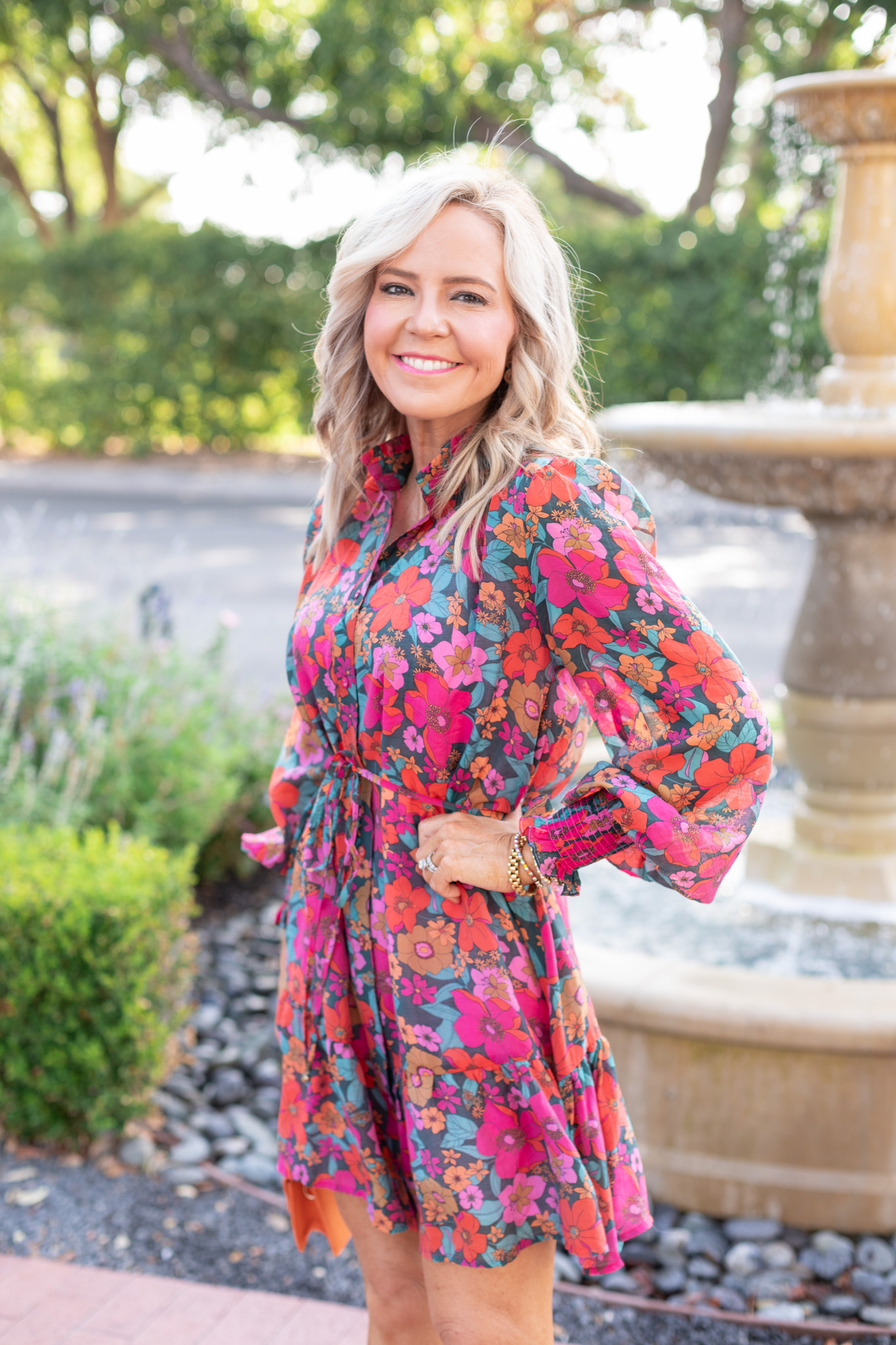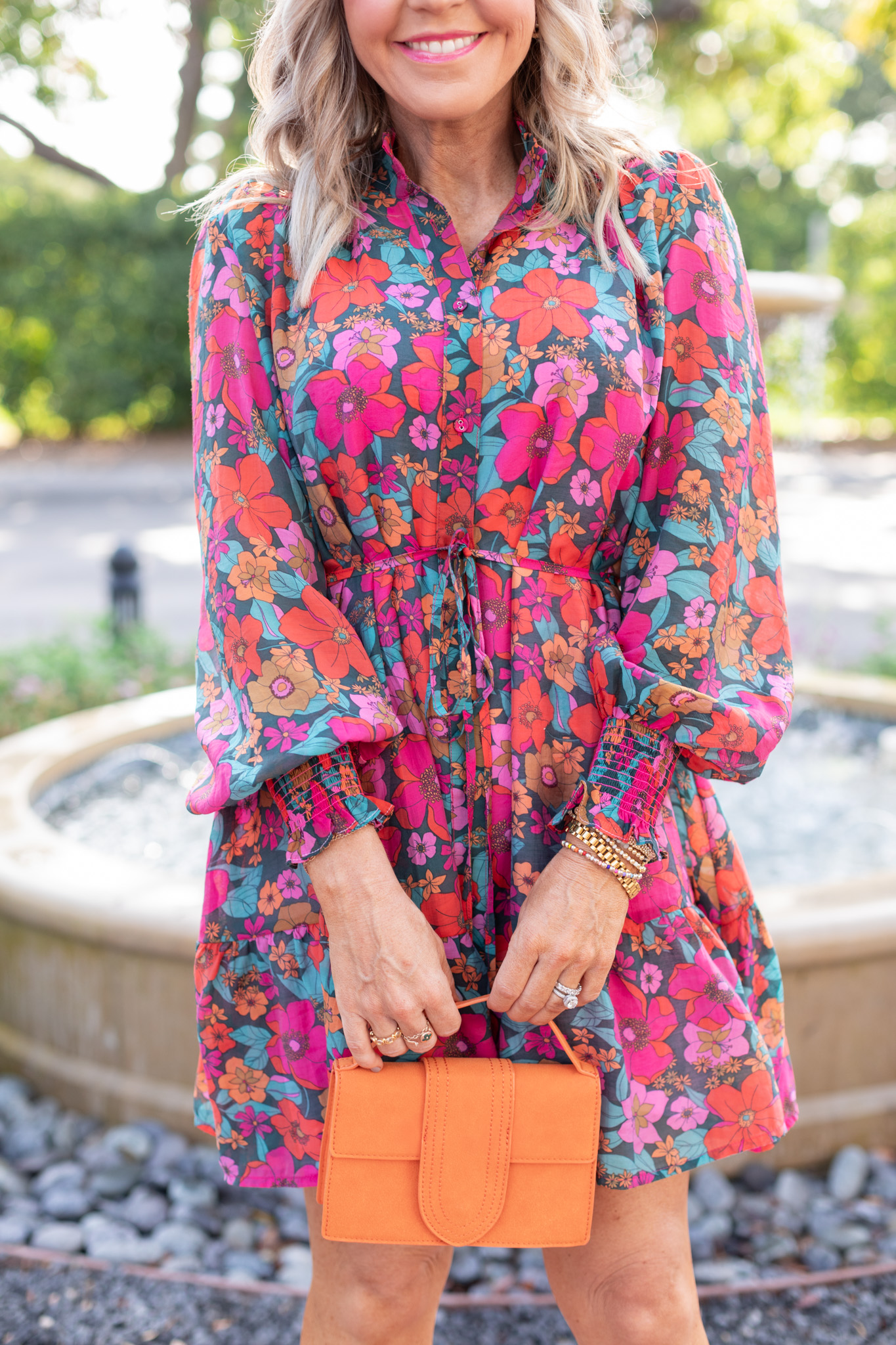 If there was ONE dress from this collection that has my name written all over it, you just found it dear friends! Who says you can’t wear florals in the fall?? This one screams seasonal superbness with its self tie belt, button up front, and blouson sleeves with smocking detail to boot. It looks like total luxe for less and I love how you can easily dress this beauty up or down depending on the occasion. [available in sizes small – large $78]