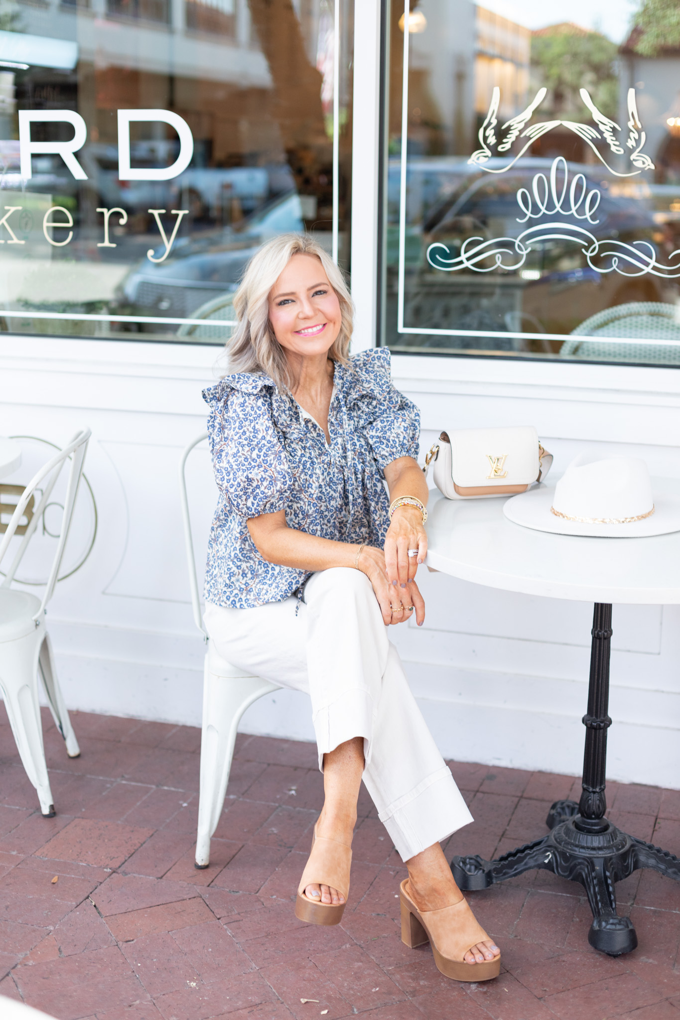 Fall florals… how groundbreaking!! I can’t help myself when it comes to an adorable babydoll blouse made for fall. The colorway of hues of blue + browns just screams autumn attire and I love the tie neck detail, flutter sleeves and forgiving a-line silhouette. Perfect to sport with ivory denim all season long! [available in sizes small – large $54]