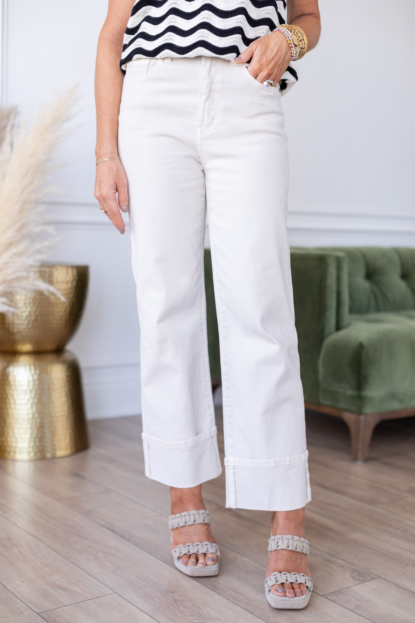 Breaking all the rules… say YES to these wide leg ivory colored jeans with a fabulous cuff detail for showing off your best fall shoes! The relaxed, oversized fit ensures you’ll be cool all season long and these are sure to be a fast favorite, too. A great way to try a newer silhouette of denim! [available in sizes xsmall – xlarge $66]