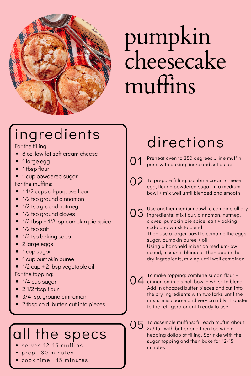 I am ALL in when it comes to seasonal baking, therefore I am SUPER thankful everyone in my family is pumpkin obsessed… or else I’d have to disown them!! My latest creation is in the form of these delciously tasty muffins [by way of Sugar Cooking]: the perfect brunch snack and/or tailgating treat.