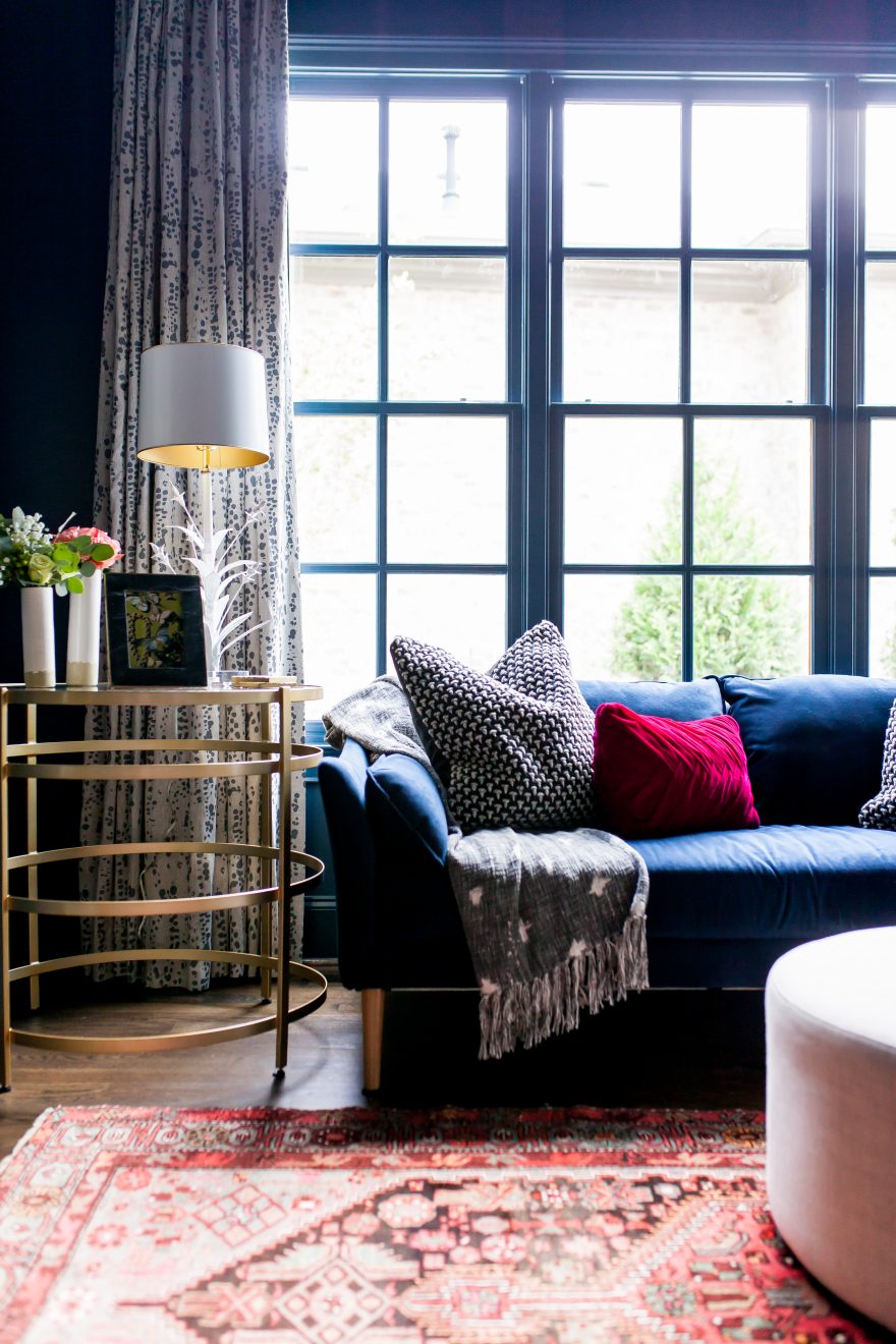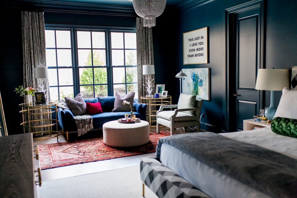 First things first… keep things clean. Incorporate cozy textiles [pillows, blankets, other linens] and then make sure to include a few of your favorite things into the design. For me, that’s a comfy sitting area with a velvet sofa where I can cuddle up + read = P.S. don’t forget the candles!! It doesn’t have to be complicated but calming colors on the walls can also help as well. And don’t forget to open up the windows, make your bed and focus on ease. I am still completely obsessed with our master bedroom design we did back in 2018 and you can see all about it here.