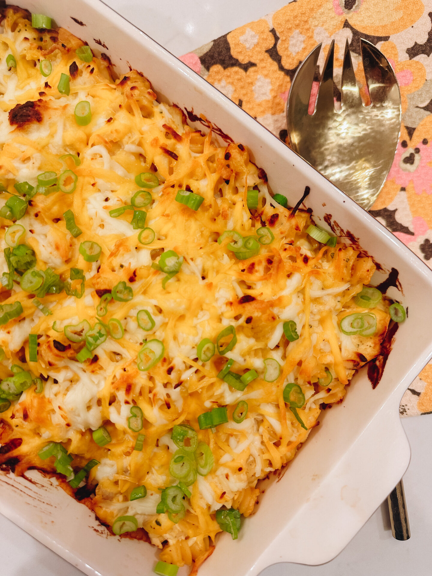 I love that it helps me add more protein into our meal, with shredded chicken + protein pasta as well as greek yogurt and my kids couldn’t tell that it was made with healthier options = another win in my book! This will definitely be added to the regular rotation and would make a great option for dropping off dinner to friends for a meal train, too. Enjoy!