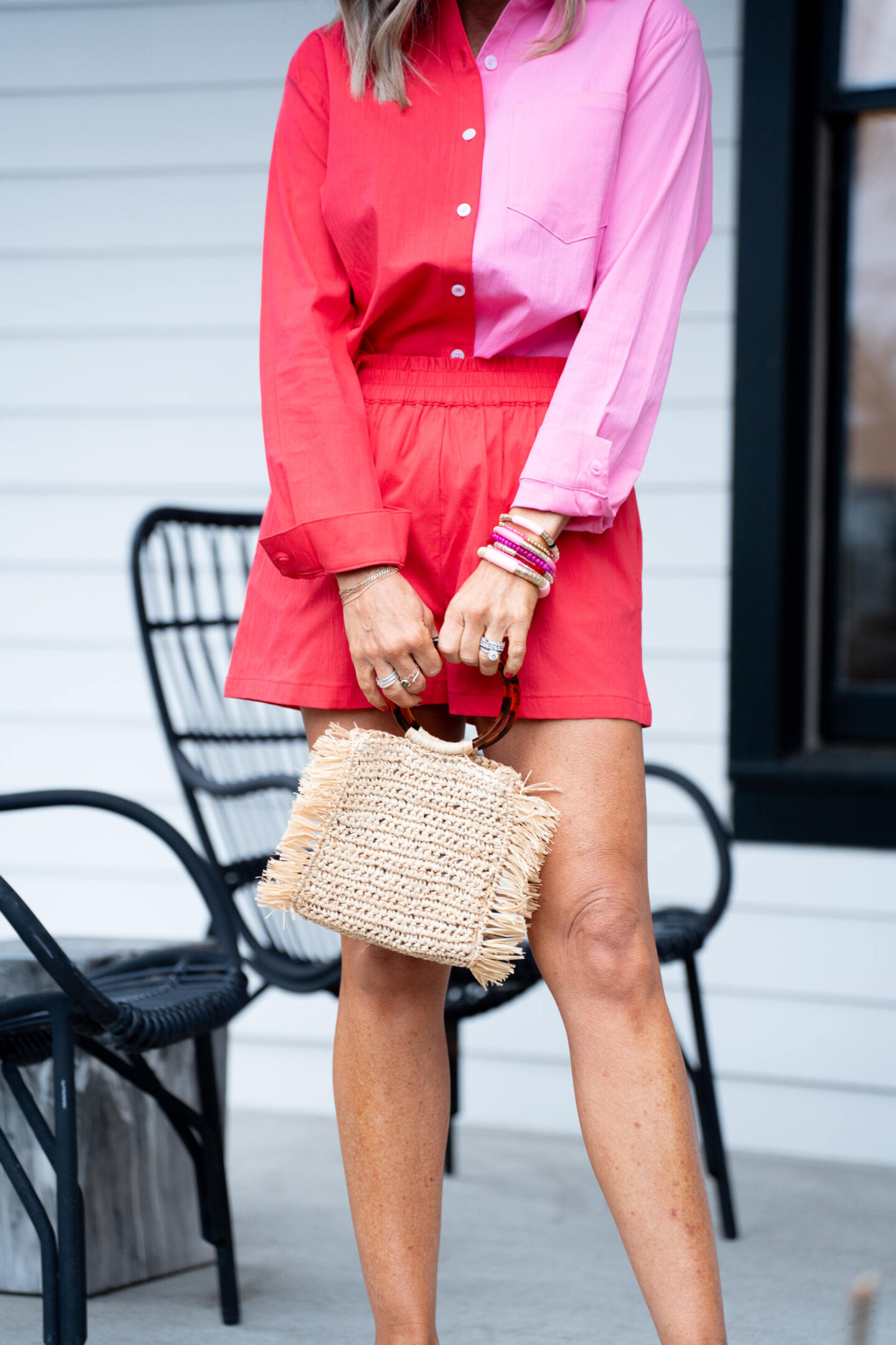 Starting things off, let’s chat colorblocked cuteness by way of this adorable Bria Sweetheart Set! It was an absolute must in that it comes in my fav combination of colors = red + pink please. You’ll be breaking all the hearts this season in this two-toned top and bottom ensemble made for leisure. A statement oxford style button up blouse with elastic waisted shorts that ensure a comfortable fit all day long! And the lightweight linen fabrication means it’s ideal for travel, warm weather and could act as a cute coverup option, too. And of course the icing on top is scoring it with 15% off sitewide at BuddyLove with code NATASHA15. [wearing XS/runs TTS]