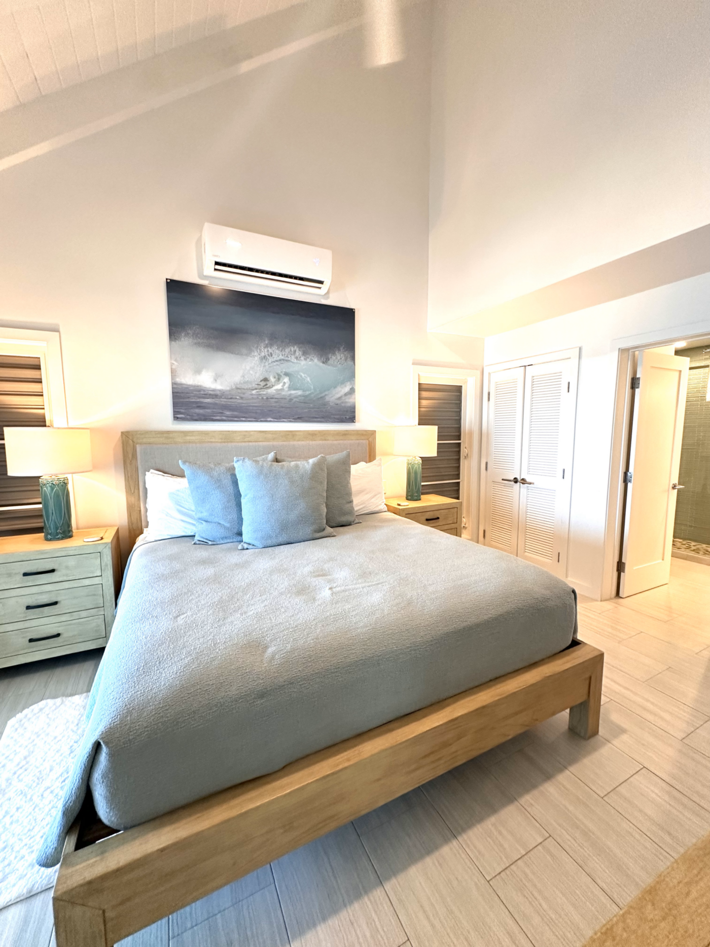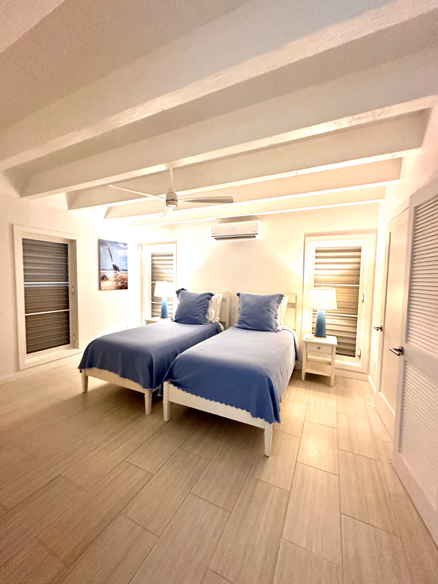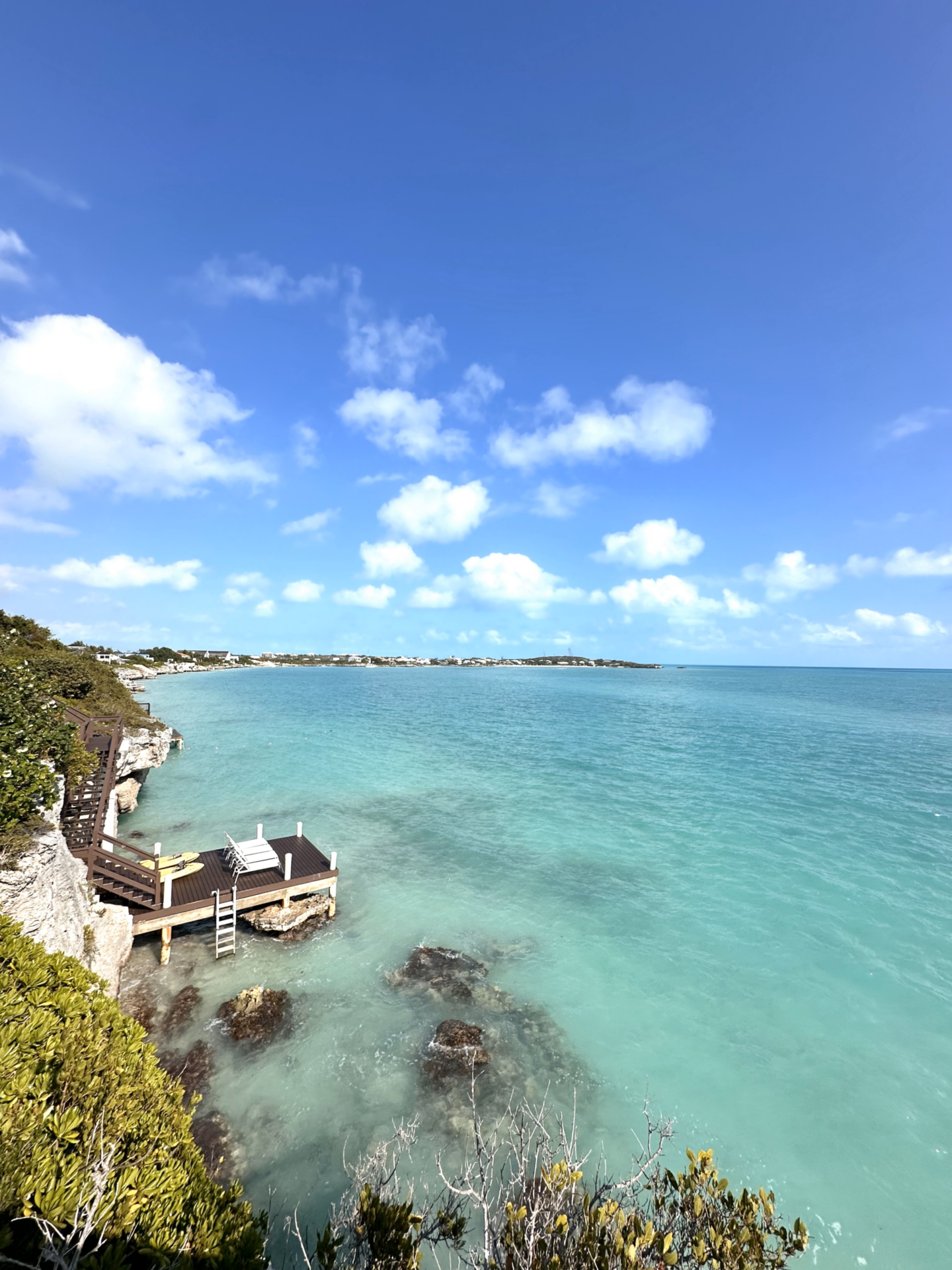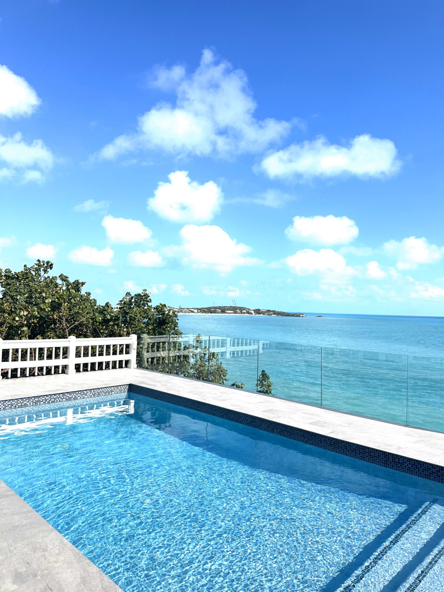 Given the fact we were going for an entire week and had a party of nine to accommodate, we went the house rental route and it exceeded every single expectation for sure! Jeff scoured the internet for hours and hours trying to find the perfect house for all of us and let me tell you, he won the VIP travel agent award for finding this gem. Villa Moonshadow was absolutely amazing in every way = plenty of space for all of us with lots of big bedrooms (5 total), ample bathrooms (4 spacious baths), an open layout ideal for entertaining and of course wide windows for letting in all that beautiful nature light and views of the ocean! And yes, the upper pool + deck area was a HUGE hit with the kids and adults alike. And the two outdoor spaces made it ideal for spending all our time taking in the sights + sounds of T+C. We loved that it was situated on the quiet side of Providenciales so very quiet and relaxed with a short three-minute walk to Taylor Bay, the picturesque beach with public access in a hidden lagoon.