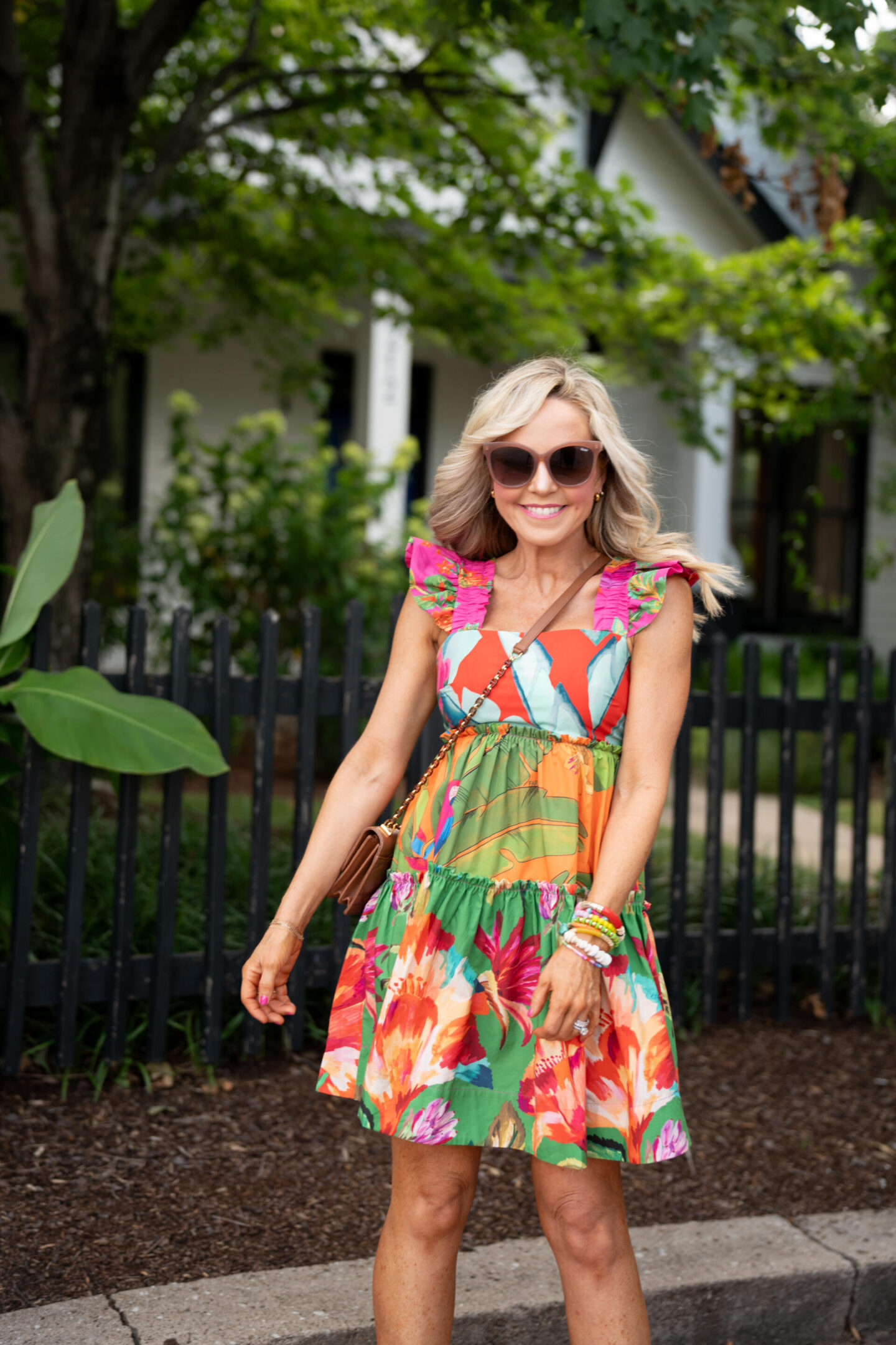Say hello to your new favorite fall frock! This Farm Rio Foliage Mix Mini Dress [wearing XXS/runs TTS] is bursting with a playful palette of vibrant florals that will instantly brighten your day. The ruffled shoulders add a flirty flair, while the tiered skirt creates the perfect twirl-worthy silhouette. Whether you’re brunching with the girls, taking a tropical trip or just running errands [because again.. why not], this dress promises to make every moment, fun!! Even better, it’s right under $200 so it’s statement-worthy + savvy.