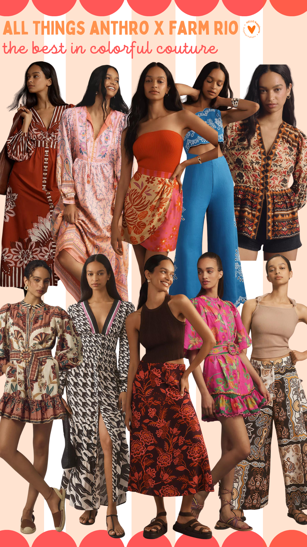 The older I get, the more I realize that life is one big celebration and your closet should be full of fabulous things that bring a smile to your face. It’s no surprise I go GAGA over all things Farm Rio and these two new arrivals from Anthropologie are perfect for early fall fun… and for those of us with plans to head somewhere warm and tropical before autumn officially debuts in a month or so.