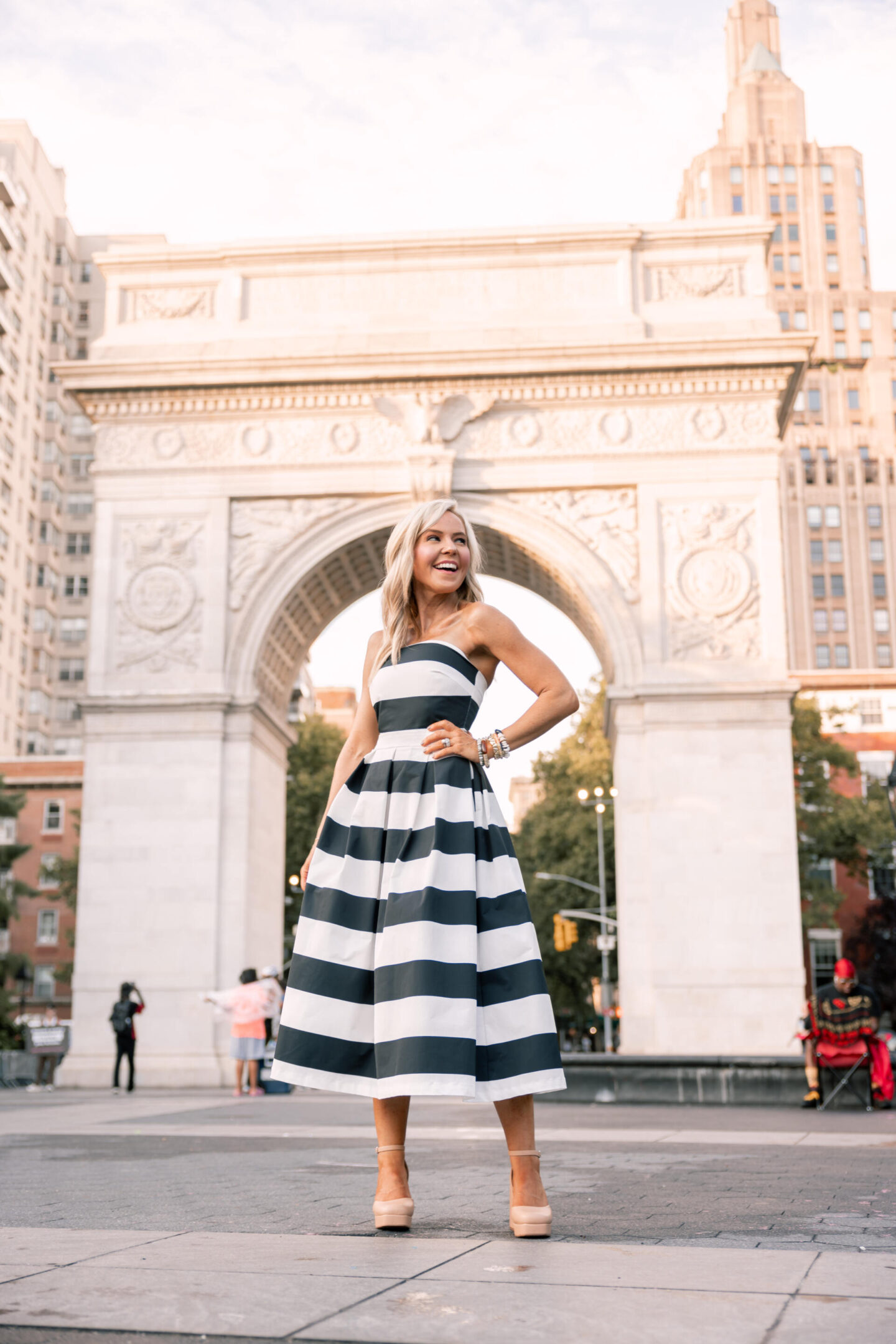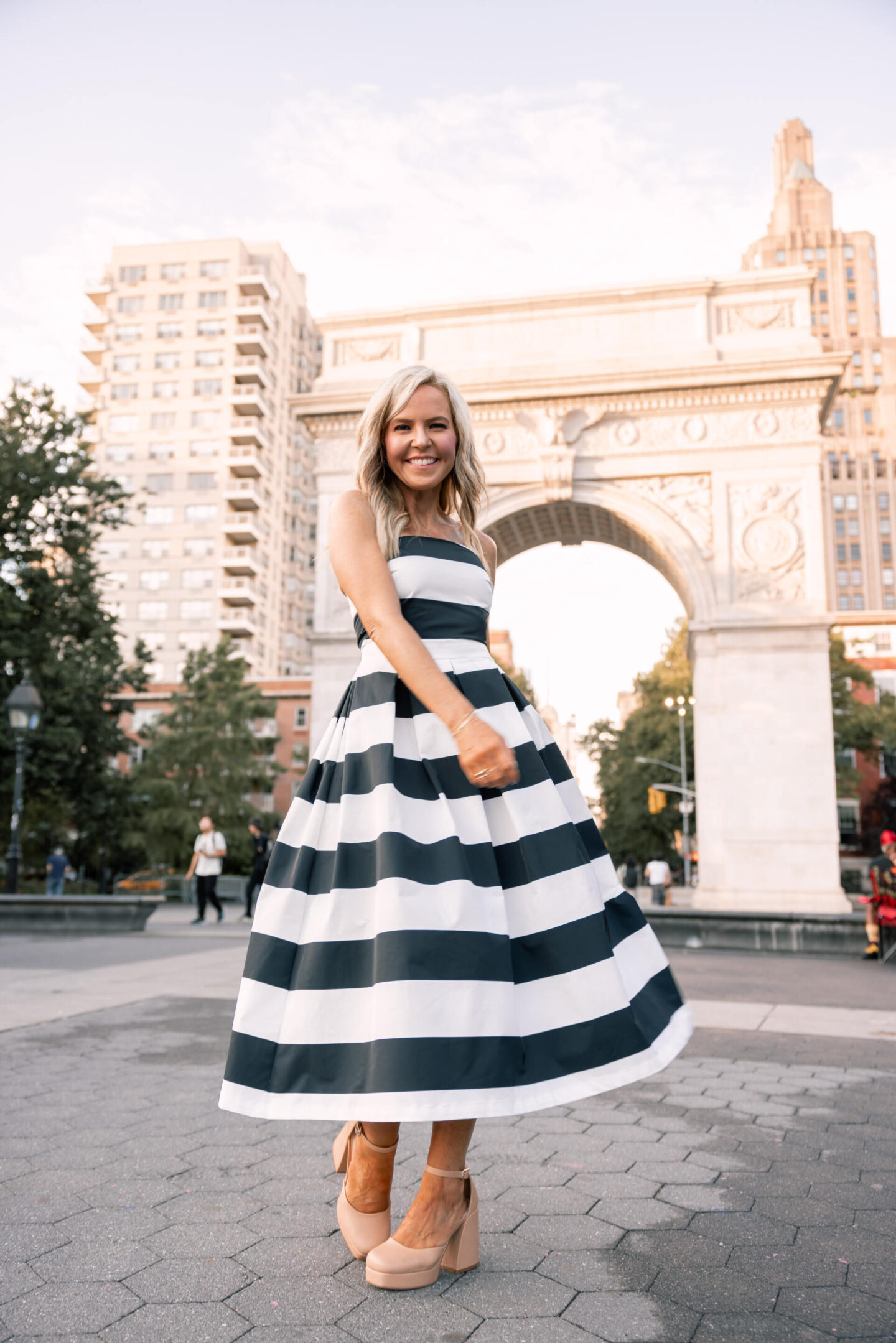 First things first… the all new Susanna Dress [wearing XS/runs TTS] from Shop Avara is an absolute showstopper for any event, no matter the season. With its bold black and white stripes, this strapless midi exudes a chic, classic vibe. The fit-and-flare silhouette offers effortless elegance, while the full skirt adds a playful touch, perfect for twirling the night away. Pair it with your favorite block heels for a look that’s bound to make you the center of attention—without going over budget!! And the best part is that you can score it now for just $80 with my code NATASHA15 [sizes XS to XL online].