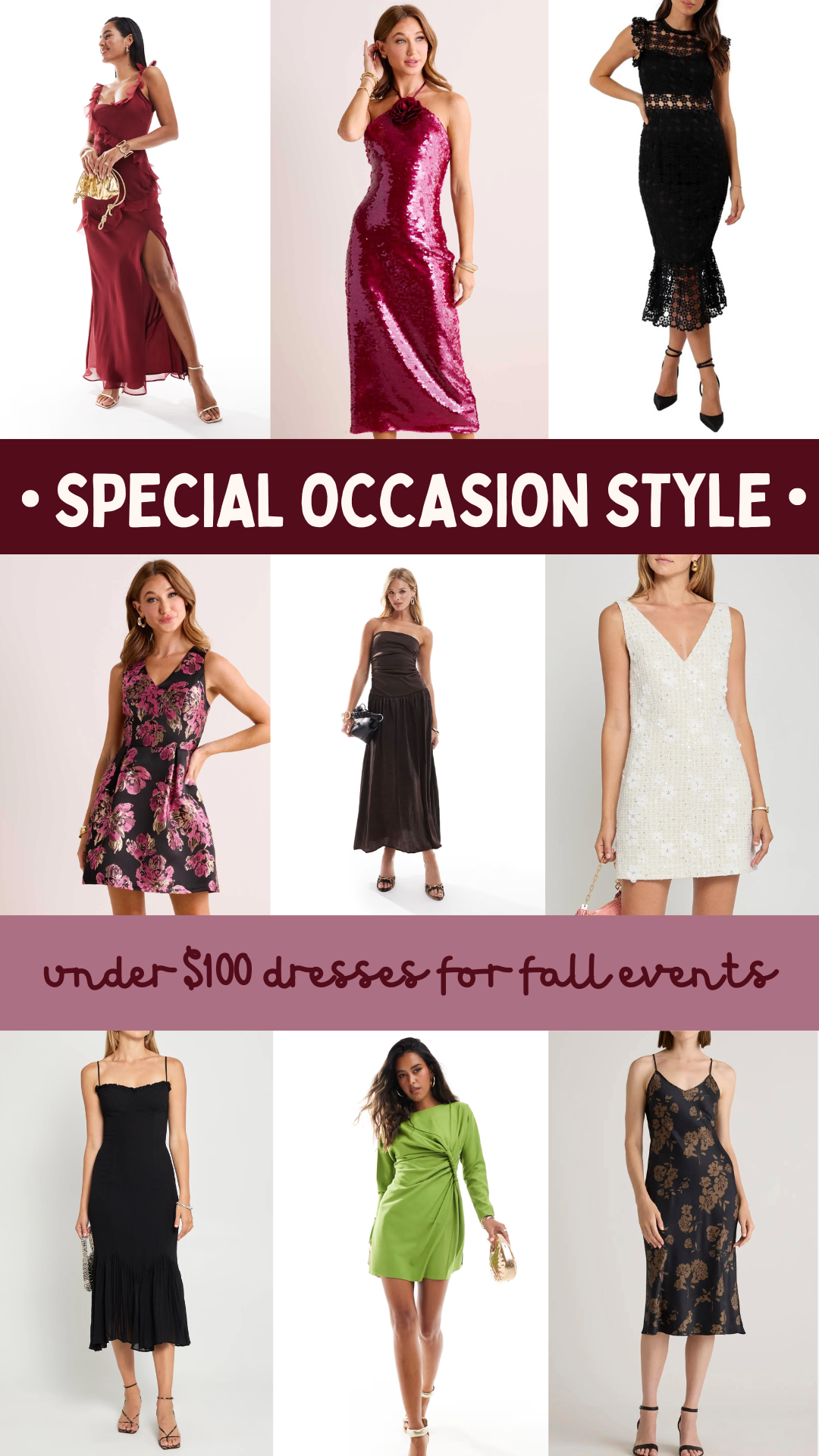 Want a few more options to shop that will stop them dead in their tracks when you walk into a room??? Shop these gorgeous under$100 dresses for all your fall events and still look like a million bucks! From glamorous sequins to flirty florals, these special occasion looks are perfect for weddings, cocktail parties, or that much-anticipated gala that might be looming on your agenda. The rich autumn hues and timeless silhouettes make them easy to wear again and again, too… so go ahead, snag one (or two!) and get ready to make an unforgettable entrance this season!