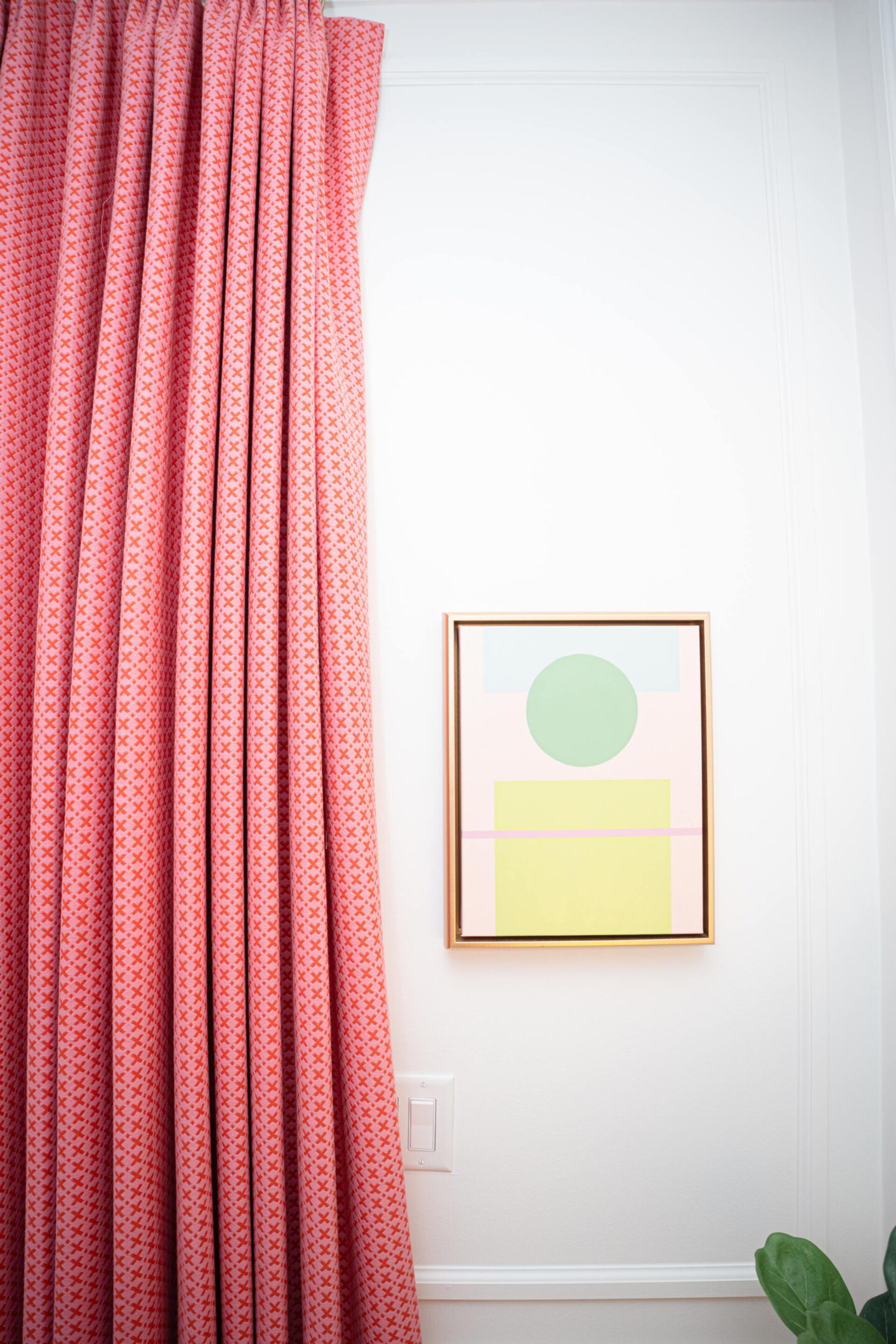 After that, we started with the linens for the window treatments. I started pulling some swatches for her to look through and she immediately fell in love with this Schumacher Elias Fabric in Red and Pink. Not only is the print perfection, but it’s reversible so you can do a ton of mixing and matching with the tones, too. I then worked with Jen from Brave Maggie Designs to complete the measurement process on how much fabric I’d need to purchase and then she owned all the details when it came to the style of window treatments we wanted to create as well as the drapery hardware in the brushed gold. She was absolutely AMAZING to work with and I cannot say enough great things about the entire process… Jen made everything super simple and the finished product speaks for itself! PRO TIP | and yes, this is where I highly suggest spending your money in a room = custom window treatments totally make a space look complete and give tons of visual interest.