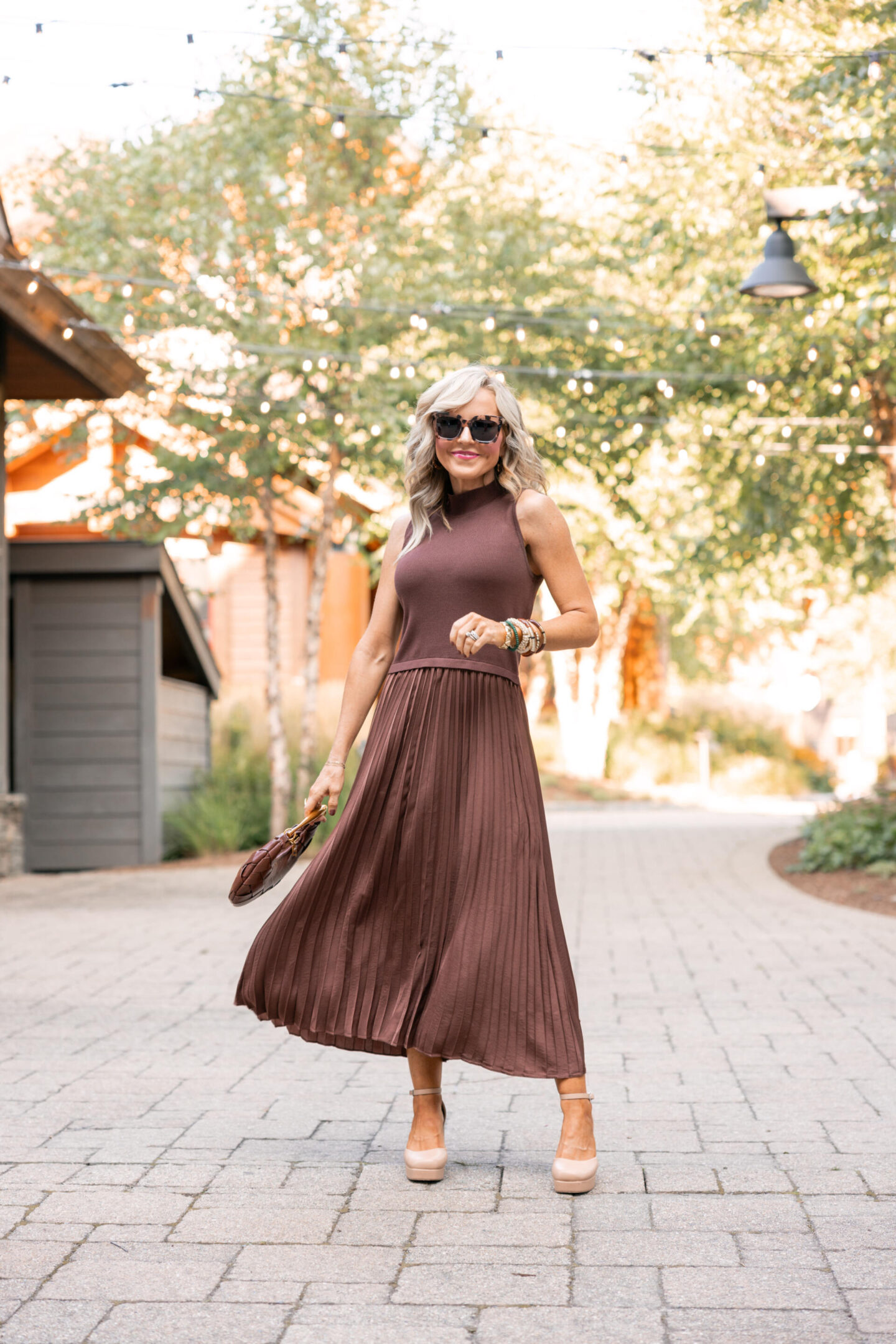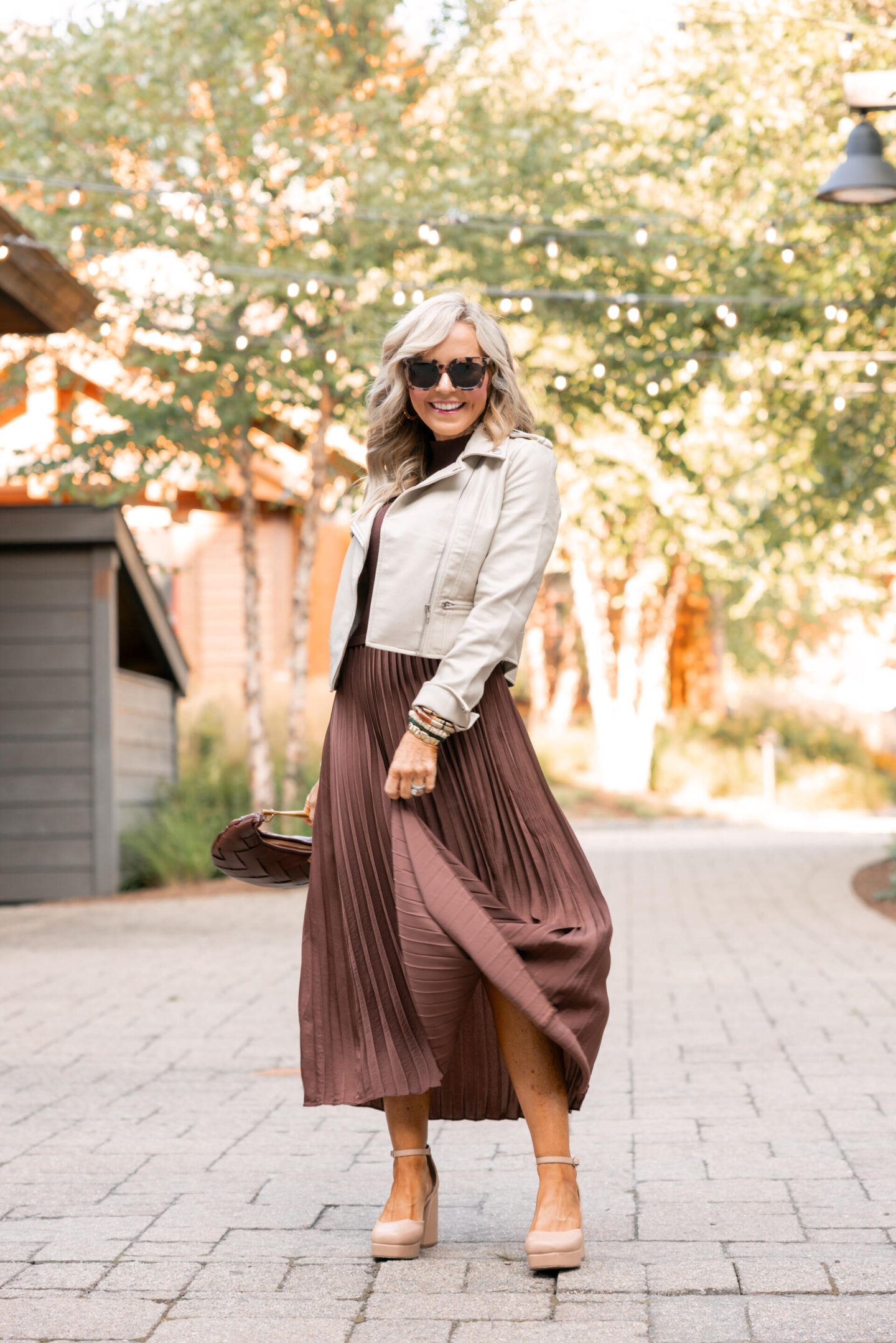 Moving along to a midi that’ll stop them dead in their tracks is the all new Wyatt Dress [wearing XS/runs TTS]! I first shared the olive green colorway in my Fall 2024 Avara Collection, but this darker shade is ideal for incorporating cocoa + chocolate into your attire and getting you set for a full season of statement style. Not only does it come in XS to XXXL, but it’s great for layering up your look with the all new faux leather Carley Jacket, too.