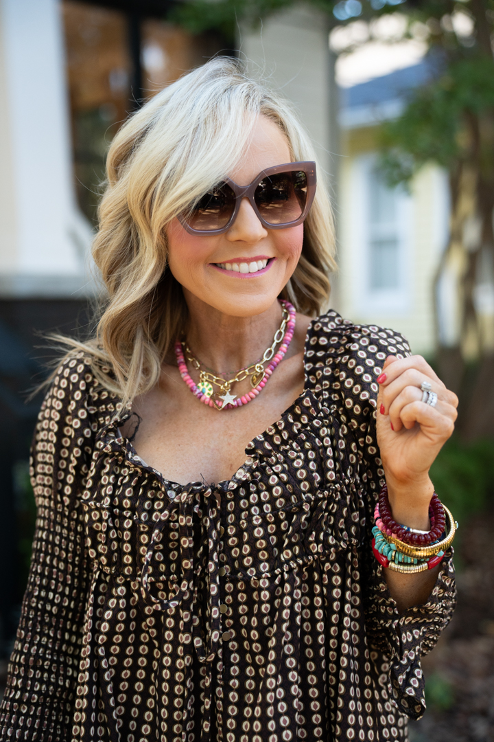 Give me all things metal mixed with a bright and cheerful beaded beauty this holiday season… our elves have been crafting this exclusive charm necklace for months and I am OVER THE MOON happy with how this piece turned out perfectly. Inspired by my mom and her love of collecting charms for her heirloom bracelet, I wanted to turn it a bit trendier with this Sawyer Link Necklace… featuring an adjustable toggle detail with colorways in both silver and gold as well as shorter and longer length choices, it’s a piece you’ll reach for day after day.