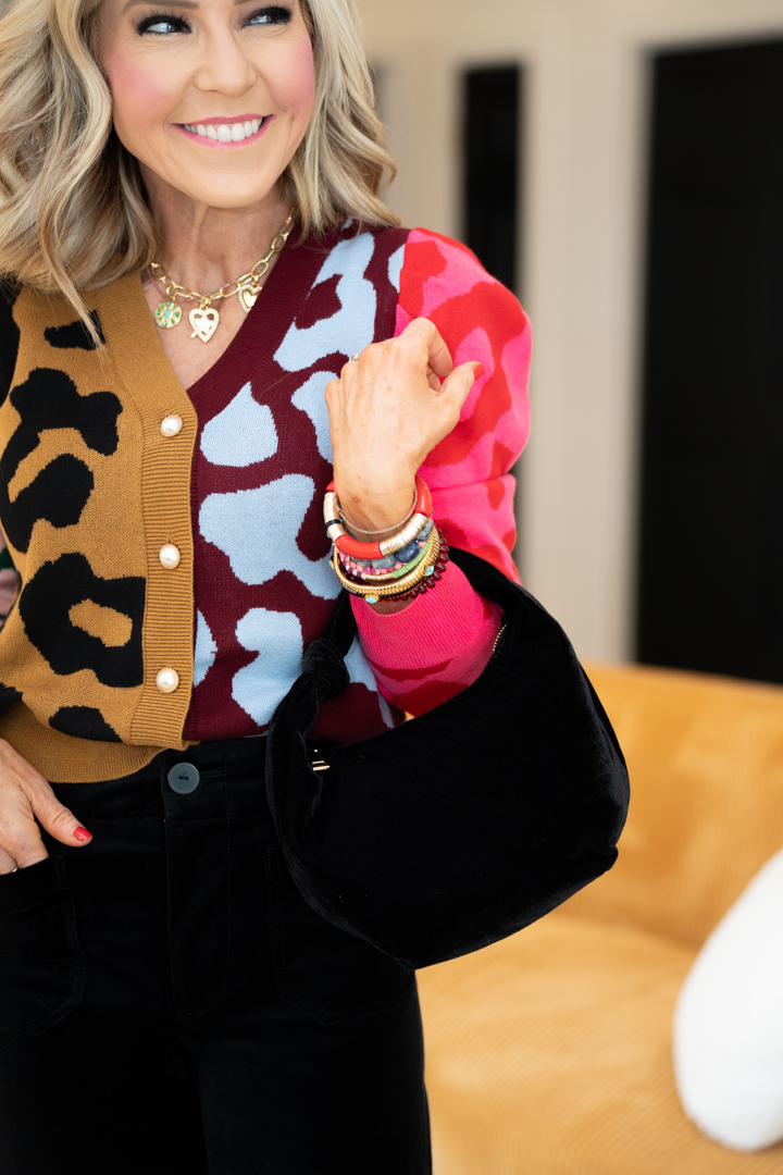 Never one to play it safe, you know we had to bring the MERRY + BRIGHT with my latest holiday arm candy… this stack includes up to seven statement bracelets in all the holiday hues so that you can totally mix and match this magic with all your stylish ensembles this season! Not only does it make a festive treat for yourself since you’ve been good all year, but it is an amazing giftable for the ladies in your life who love some sparkle and shine. Get ready to sleigh your holiday looks with this vibrant stack of sweetness…