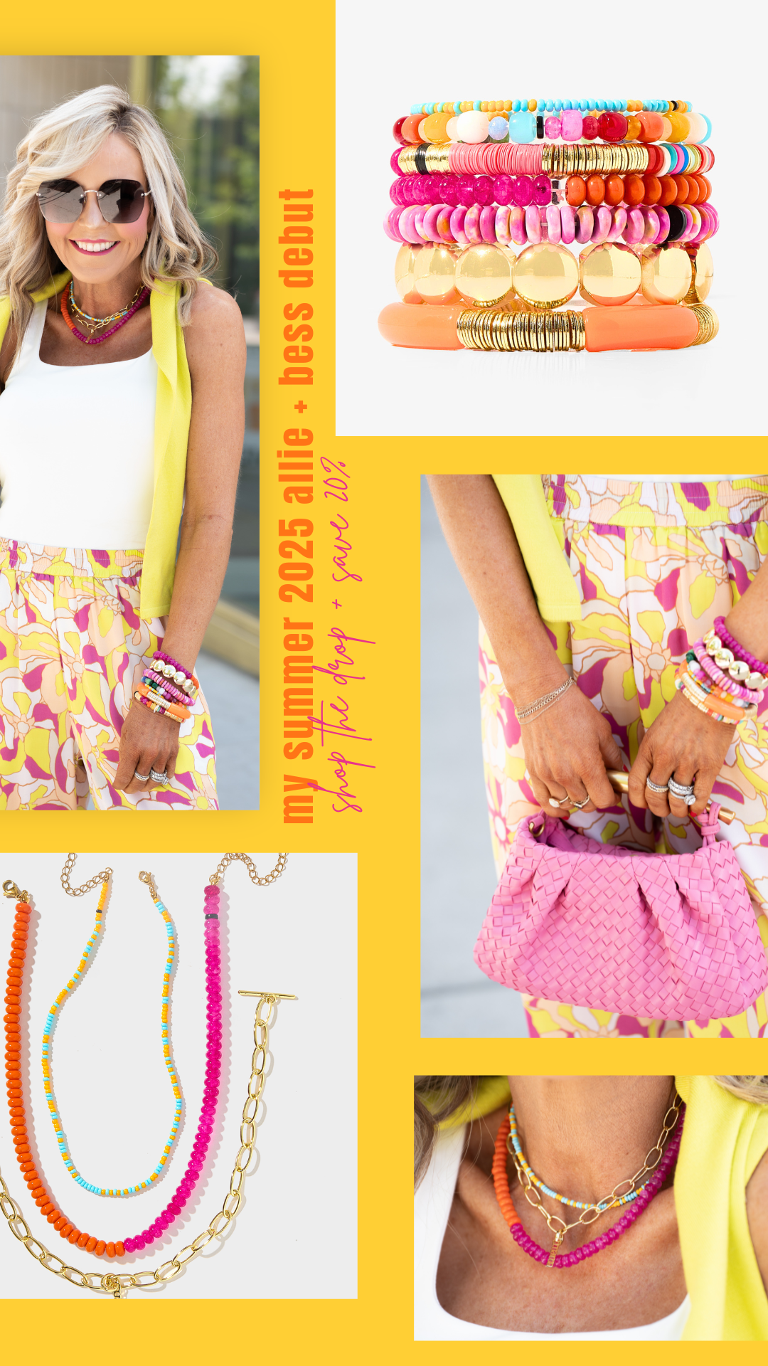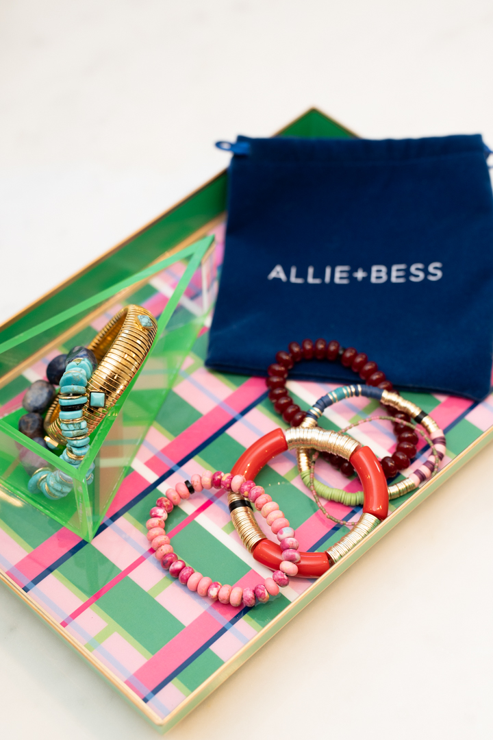 It features the Polly Bangle Bracelet, Blue Christmas and the Red Zo, which are perfect for standalone statements or—of course—as a stack!! I love the combination of chunky gold accents with all my favorite bold color touches in reds + pinks of course with green and blue to boot. This new stack is bursting with festive charm and designed to be a versatile, year-round statement piece!! This new debut blends texture and color effortlessly, with each bracelet adding its own unique flair. It’s vibrant, eye-catching, and ready to stand out at every celebration—or simply add joy to your everyday style…