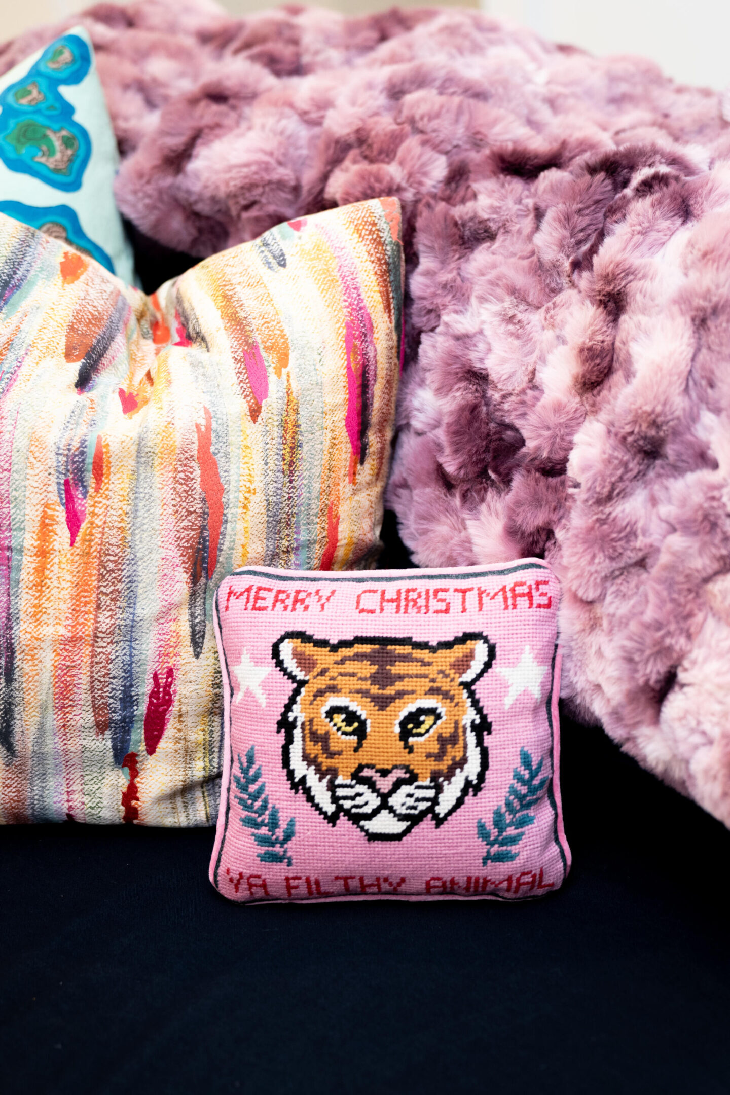 Finally, get ready to embrace the holiday spirit with cozy accents like Anthropologie’s light-up holiday village, borosilicate glass trees, and plush peppermint pillows, or Furbish Studio’s ho ho ho needlepoint pillow, or playful pink nutcrackers. Add a dose of cheer to your tabletops and shelves with these unique pieces that blend nostalgia and modern holiday charm. Make your home a warm, inviting retreat with decor that truly embodies the magic of the season and gives you a smile every time you pass by as well: