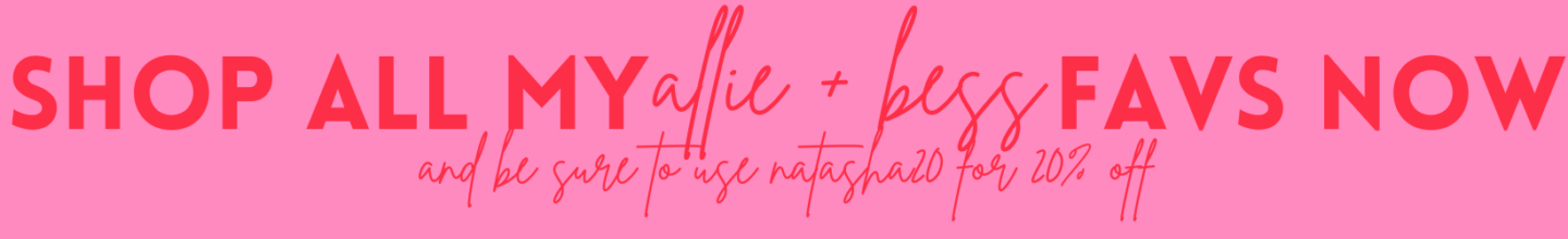 Just as with all Allie + Bess baubles, the stacks are effortlessly elevated and true show stoppers… no matter where you’re sporting them! Just another reason to shop small and support these incredible girl bosses = not to mention we’re giving you 20% off as always with my code NATASHA20.