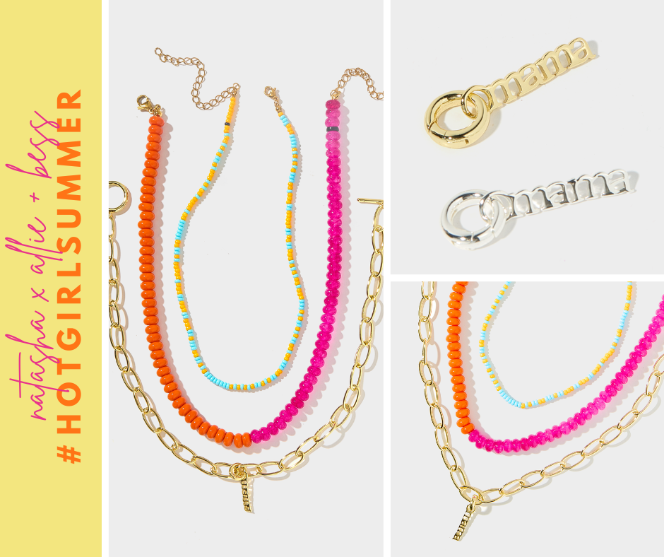 Ready to shop the full drop??? It’s all saved here where you can add all of my Allie + Bess favorites… goodies I’ve designed, go-to essentials including the new bag charms we’ve all been swooning over and random accents in arm candy I believe are perfect for everyday accessory styling = as always, be sure to shop now while my 20% off code — NATASHA20 — is active so you can stock up and save!!