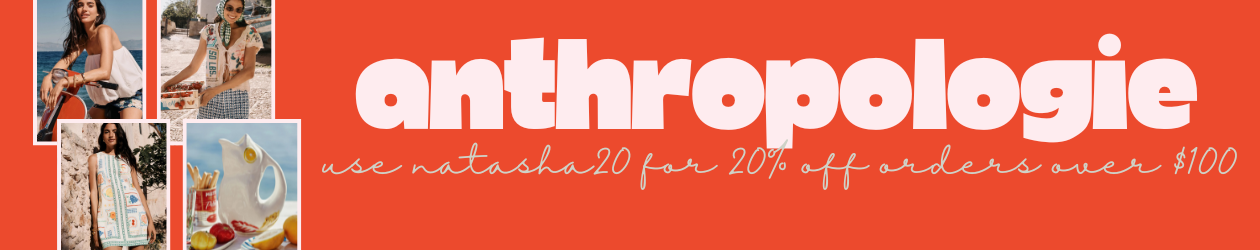 Basically we are kicking off the weekend deals and steals in a big way EARLY this week… it’s getting HOT this season and I’m here bringing you the best news = starting today, you can save 20% off on all apparel, accessories, shoes, beauty + home orders [for orders totalling over $100] this weekend exclusively at Anthropologie!