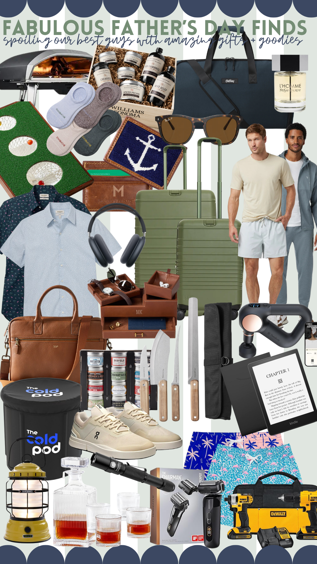 And to make it even easier for you this year, I’ve rounded up a list of goodies that hits all the high notes = from luxe to practical. Think a sleek Glass Decanter Set for his favorite spirits [a must for those who love their old fashioned cocktails], a DeWalt Power Tool Kit for the DIY king, and even a Cold Pod ice bath tub for the wellness junkie. I’ve also included top-rated tech like the Theragun [Jeff uses his all the time!] and Apple AirPods Max, plus a Kindle for the undercover bookworm. Don’t miss the classic wardrobe staples [my guys go-to joggers], stylish new travel gear [Jeff just got the Beis set and is obsessed], a mini golf game set for office fun, a quality BBQ Knife Set, and trusty Bombas socks that are always a win in my home [Pappy adores them as well]. Basically, it’s everything he didn’t know he needed, all in one place.