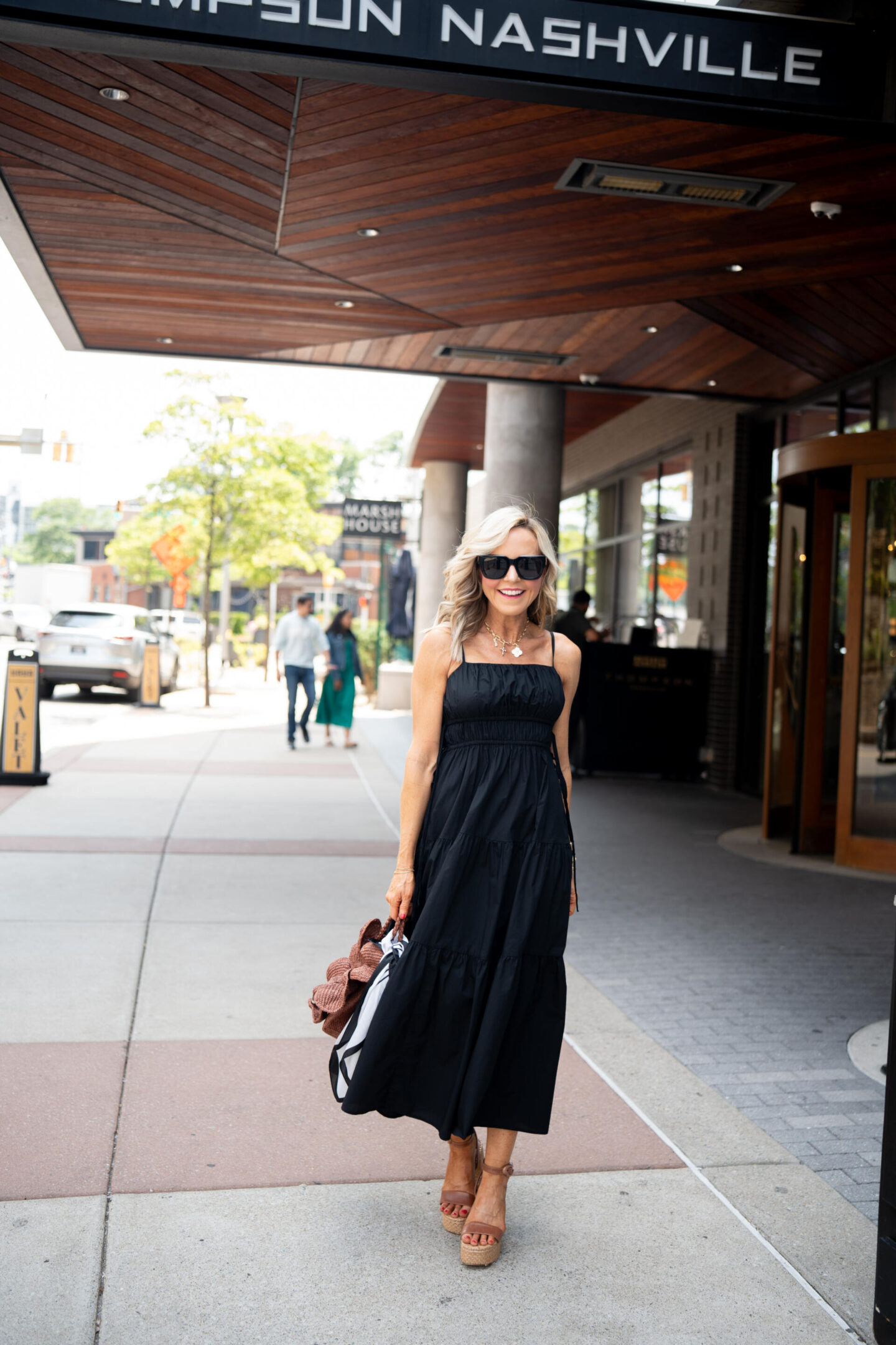 But I am back with an all new debut of a statement summer stunner by way of this Pleated Side Tie Strappy Midi Dress from Loft [wearing XXS/runs TTS]. Not only is it chic + practical, but it’s on sale, which makes it an even more must-add-to-cart kind of situation. It fits the bill for so many occasions and everyday ensembles for summer and the details make it even more divine! 100% cotton means it’s breathable and a great style for warm weather, while the subtle a-line styling ensures a flattering fit for all! Of course I love the square neckline, adjustable spaghetti straps, and fun side tie accents as well.