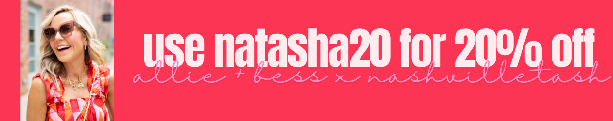 We hope you adore this collection as much as we do… I cannot WAIT to see you wearing these out in the wild! AND be sure to use NATASHA20 to take 20% off your entire Allie + Bess order = I might have begged to get my code turned back on and I am SO happy they made it happen for us! OXOX