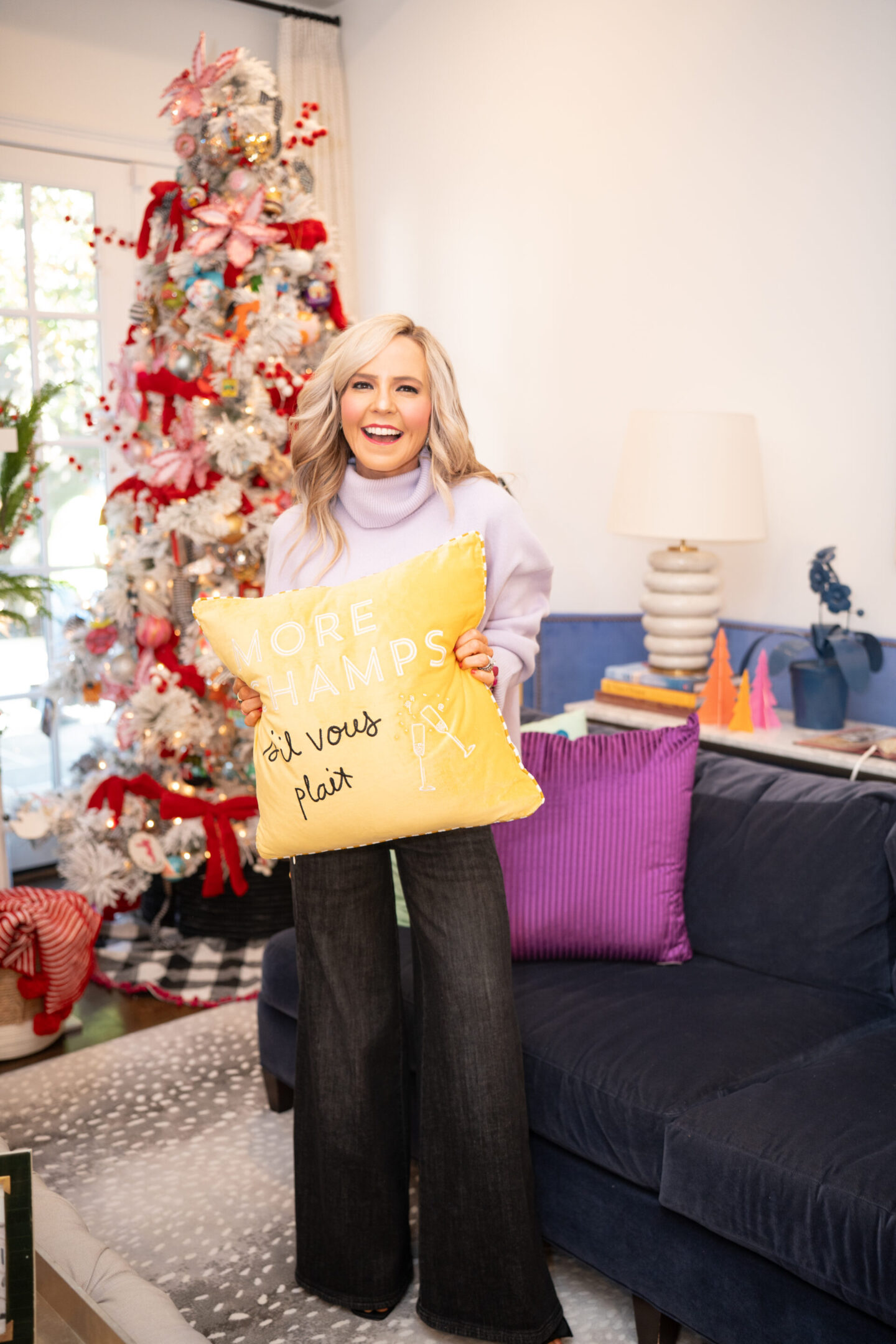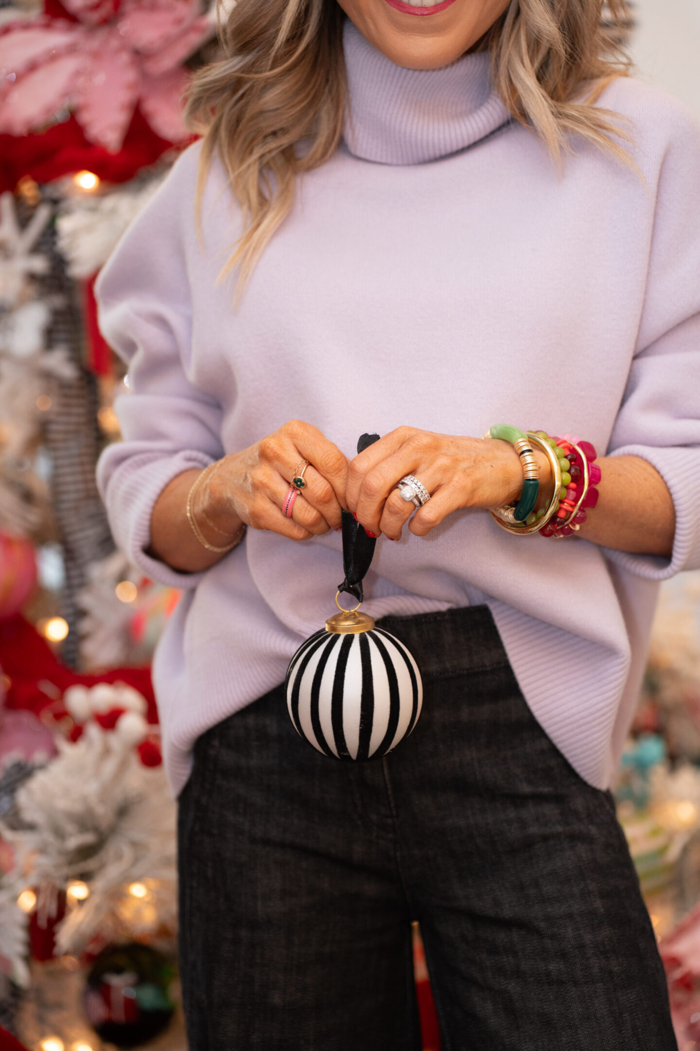 If you’re leaning into softer hued colors this season, this lavender Turtleneck Sweater [wearing XS, runs TTS] is just what you need. It’s plush, polished and pairs beautifully with Maeve Scallop Wide Leg Denim [wearing size 24/run TTS] for an elevated-casual feel, perfect for think tree-trimming parties, casual dinners or a cozy night in with a festive cocktail in hand [and yes, these confetti wine glasses are on sale, too!]. Add in a Bow Heel [under $100 with my discount code] with a fun feminine accent, and suddenly it’s a full winter soirée moment. Subtle, chic and surprisingly versatile for all the merry things on your calendar.
