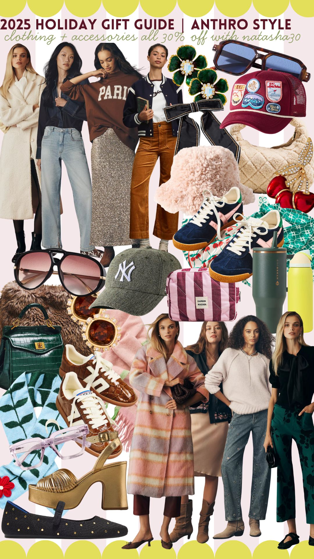 So if you’re ready to start checking those wishlists early, this is your moment! From cozy coats and statement sweaters to luxe wool coats, sparkling swing dresses and festive accessories galore —Anthropologie’s holiday lineup is serving major gifting and outfit inspo this season. I rounded up my top picks that are all 30% off with code NATASHA30, including everything from best-selling Colette Pants and Farm Rio favorites to sneakers, handbags and glam gold heels perfect for party season. Think timeless meets trendy — the pieces you’ll love gifting [and probably keeping for yourself]. Shop below to save big while these styles last AND you can score them all with 30% off!