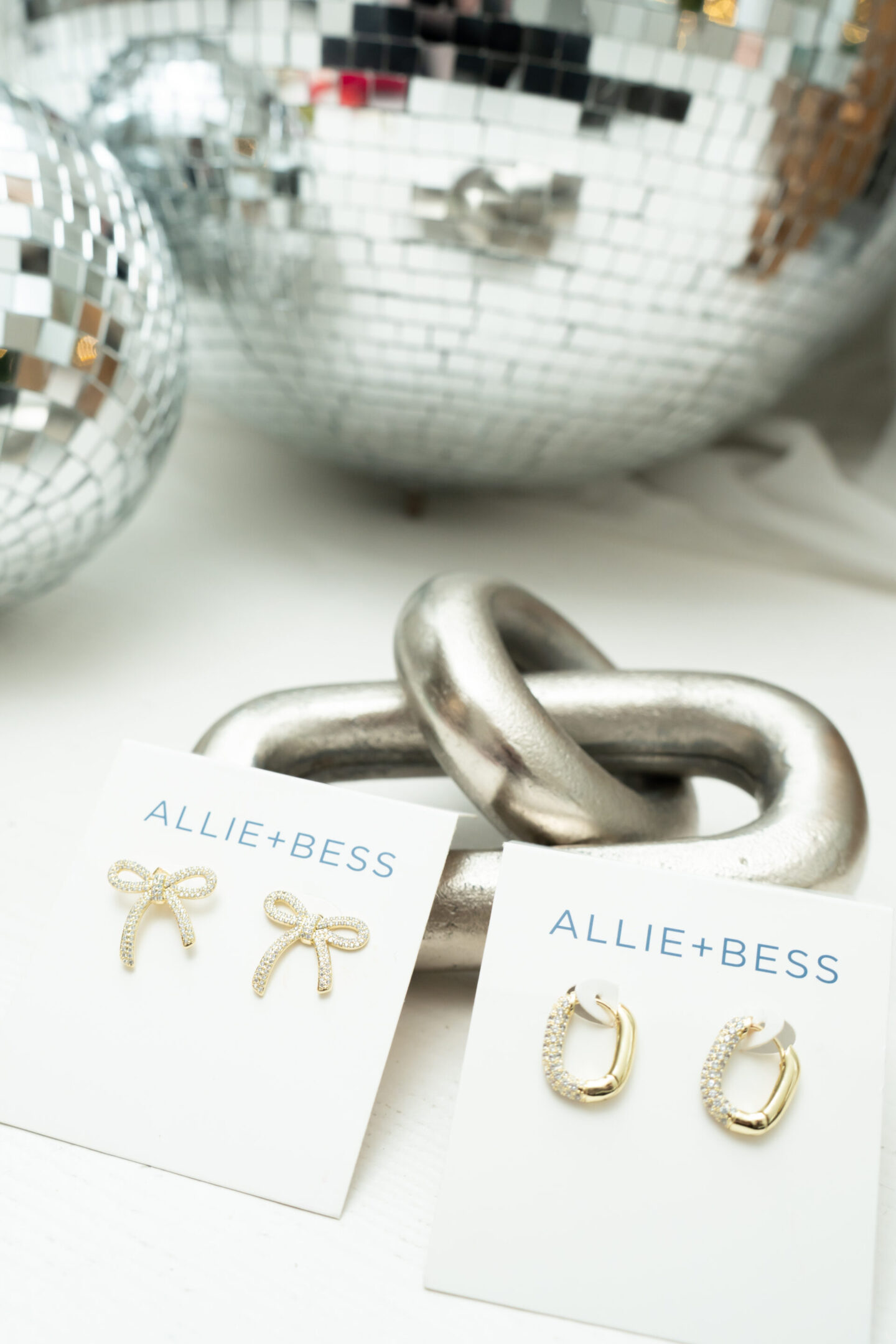 It’s no surprise I love working with Allie + Bess… I cannot believe we’ve been collaborating together for almost 5 years now!!! I love their authenticity and staying true to who they are, while bringing unique and fabulous drops to their loyal followers and customers! They celebrate women and love to bring the personality to each drop we debut together. We share the same love for meaningful accessories that make you feel confident and happy AND elevate your ensembles! Every collab we’ve executed together has felt like designing something ultra exciting with my closest friends — this one just adds a little extra sparkle given that it’s the time to glitter while you galivant around town!