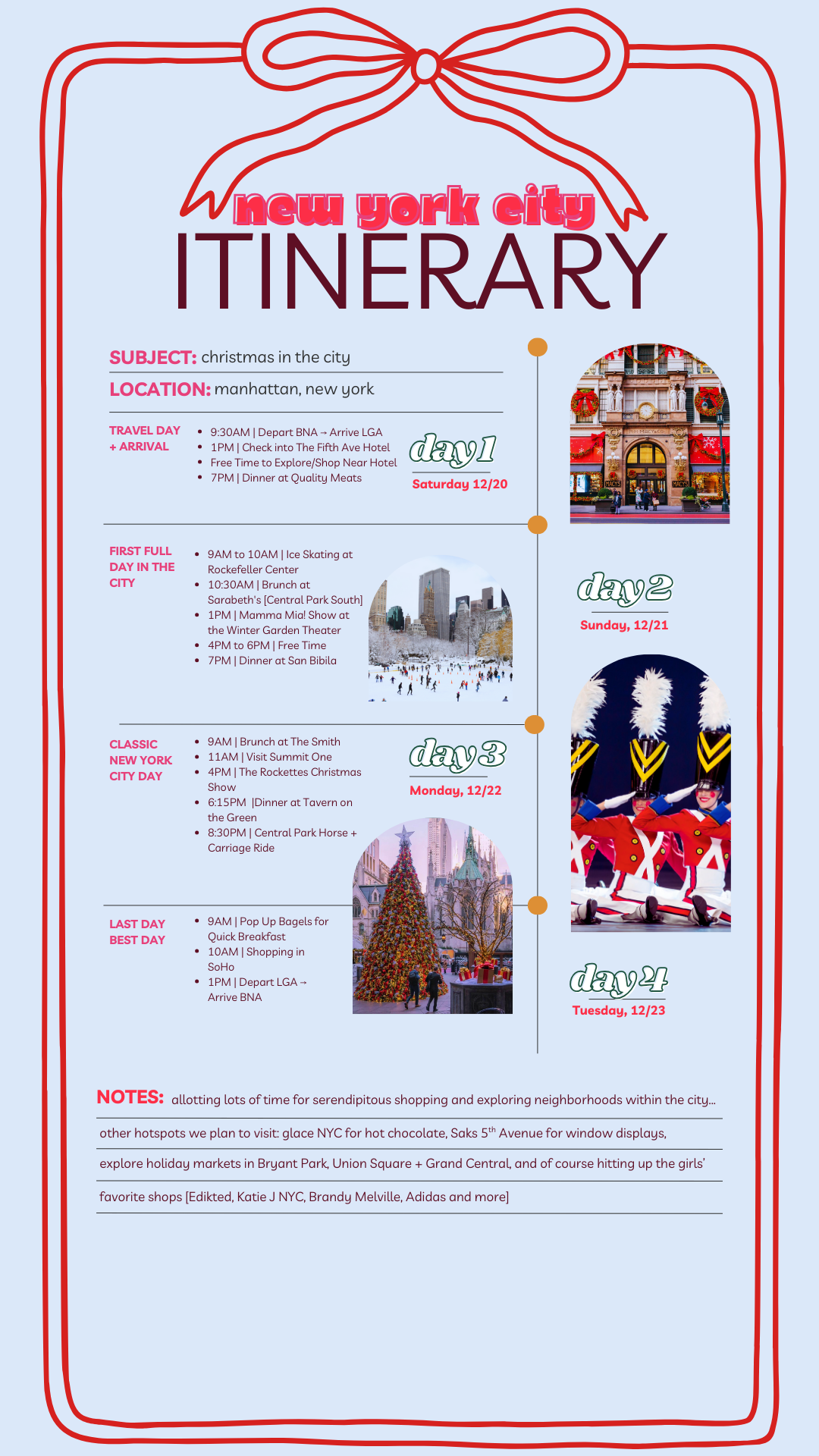 It’s been almost six months since I took my last “vacation” from work… back when we traveled through Italy this summer and I purposefully forgot to take my laptop with me #oops. But alas, I am doing the same exact thing over the next few days as Jeff and I head north with our girls to take in New York City, Christmas edition! Honestly, we both live by the motto “work hard, play harder” and it’s time for us to escape the everyday and enjoy the time away from our normal daily grind as a foursome… shop