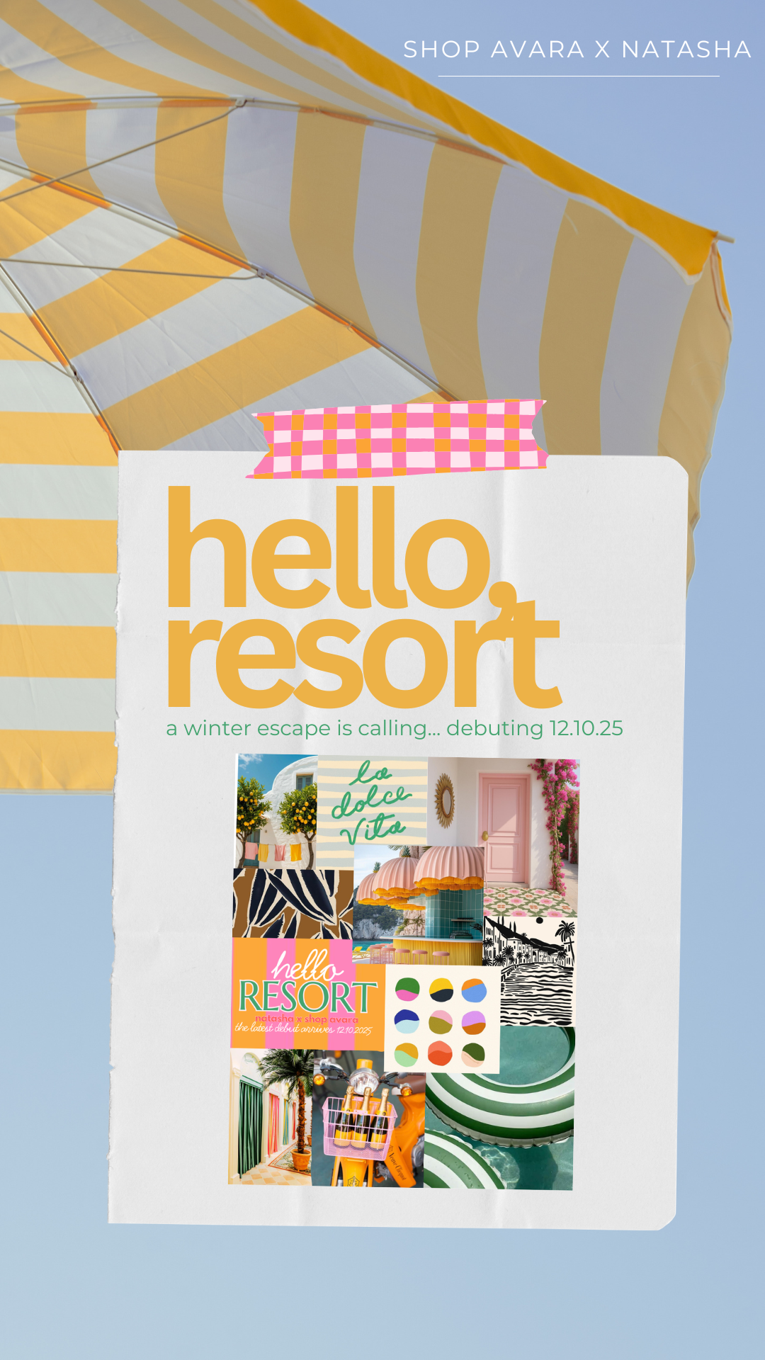 Warm weather and adventure is calling… it’s time to step out of the holiday season and get set for something fabulous, fun and ready for a getaway = say hello to my latest collection with Shop Avara: Hello, Resort! Where sun meets style = it’s your first official sneak peek of my first ever resort debut.