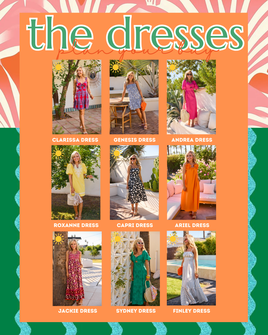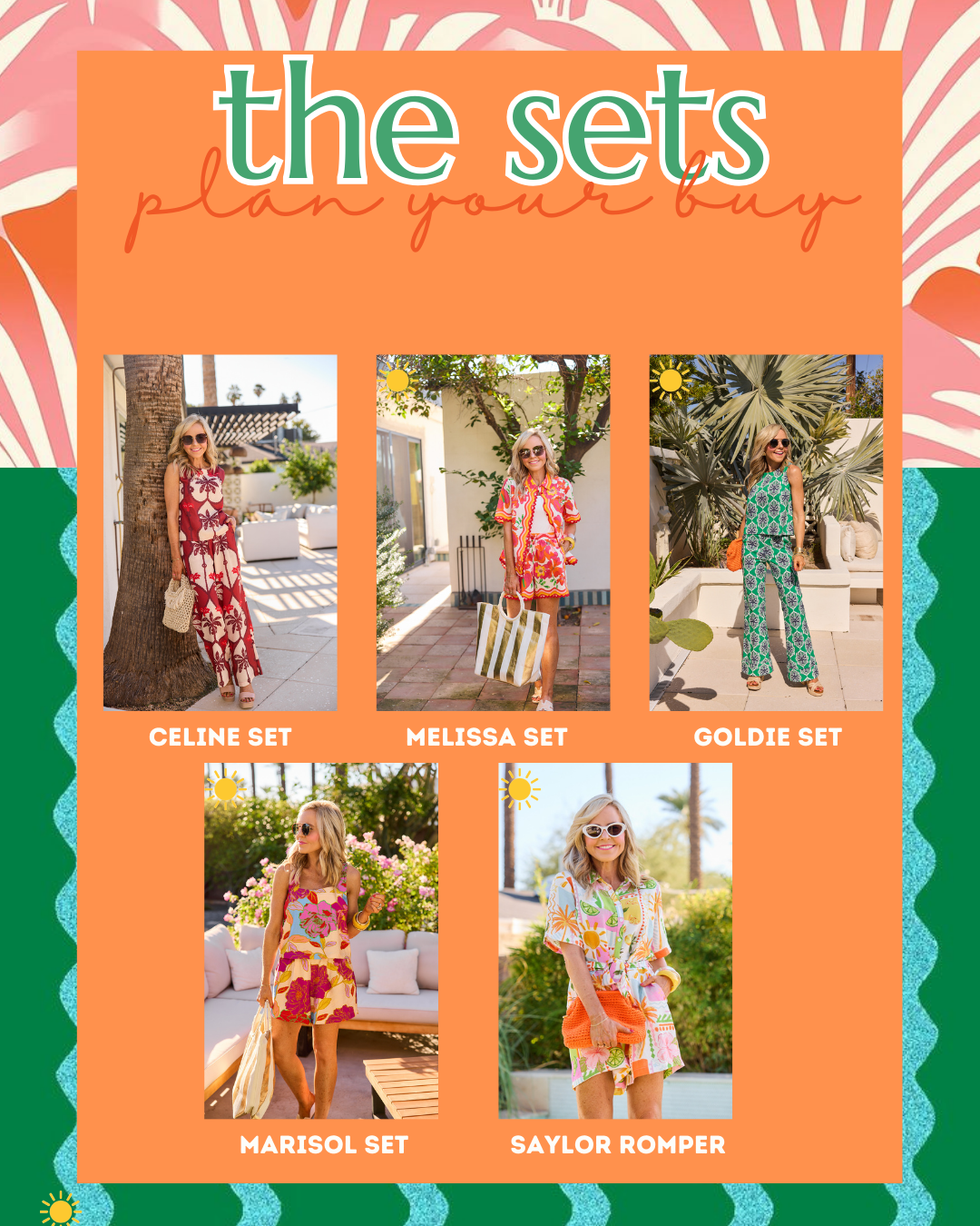 So, let’s get the resort party started and chat all the specifics about the drop… I’m starting this proper show and tell at the top with all the stellar sets, rompers and dresses = those one and done wonders that effortlessly make your ensemble totally memorable + magical. So many various styles so that you’re certain to find a few winners… per usual, it’s always hard for me to pick favorites because I adore them ALL, but if I had to narrow it down to just a select few I’d say the Goldie Set, Saylor Romper, Clarissa Dress, Andrea Dress and Ariel Dress top my list!