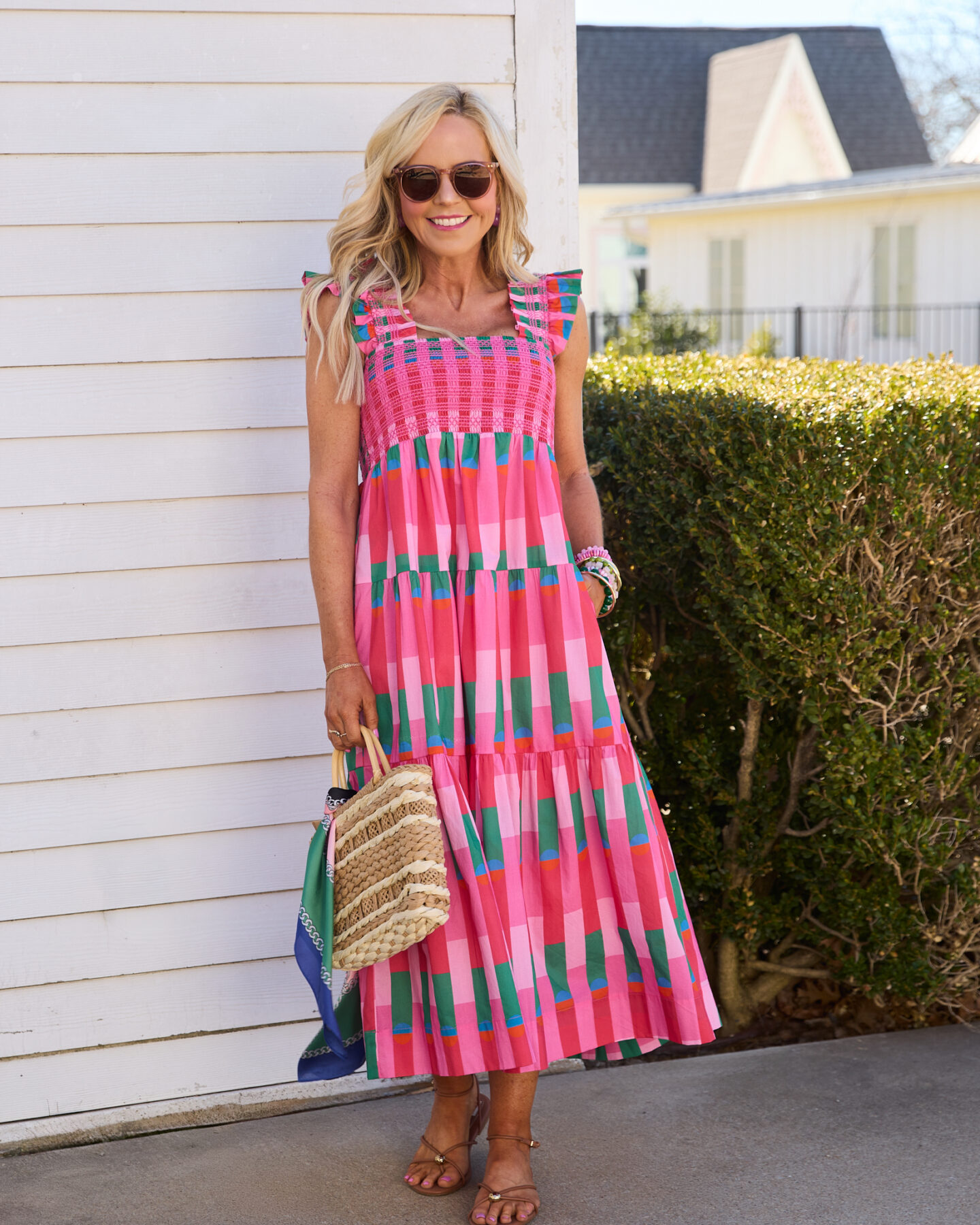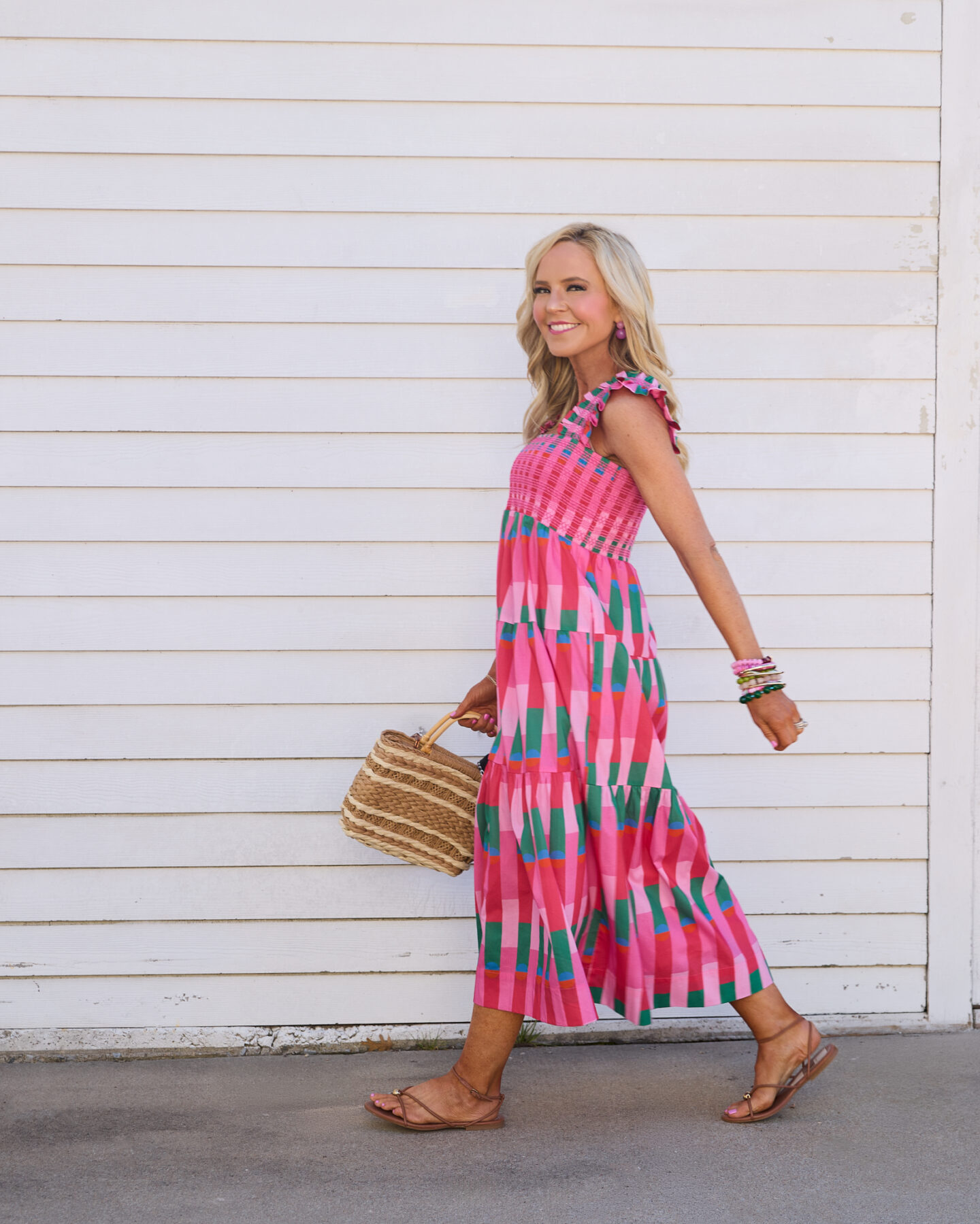 Exclusive Avara Design | If you’re looking for the most colorful + classic style midi dress this spring, this is IT! We created this geometric goodness in a flattering figure style that looks as good as it feels. Crafted with a tiered nap silhouette, it features smocked straps and fully lined fabric that’s easy for everyday wear. Packed with poppy colors, it evokes all the emotions to spring forward in high fashion. Expecting?? Yep, this is a winner for a bump or as a swim-to-style OOTD on vacation as well. [wearing XS/runs TTS]