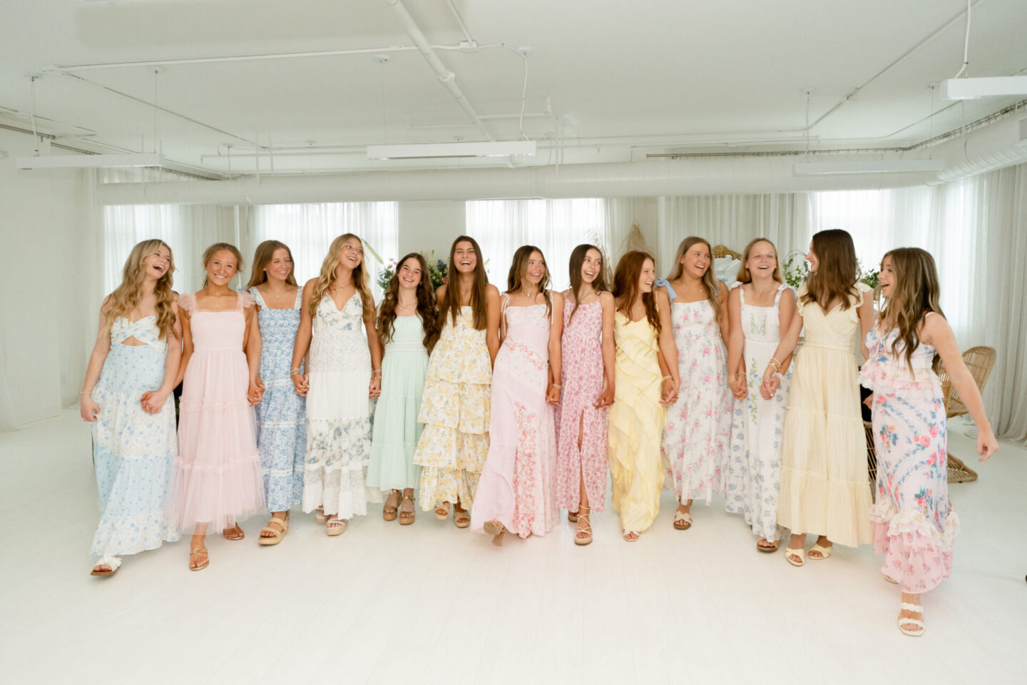 Earlier this month, we got to celebrate our very special 14-year old with a fabulous, frilly, feminine birthday event with all of her besties in tow. She was very specific about what she wanted… a fun photoshoot with her besties from our go-to local photographer, Chelsea Roc, and originally we had intended to do it in downtown Nashville on the pedestrian bridge but alas spring weather made us pivot to a local studio we shoot at regularly which actually turned out to be even better = Kairos Studio.