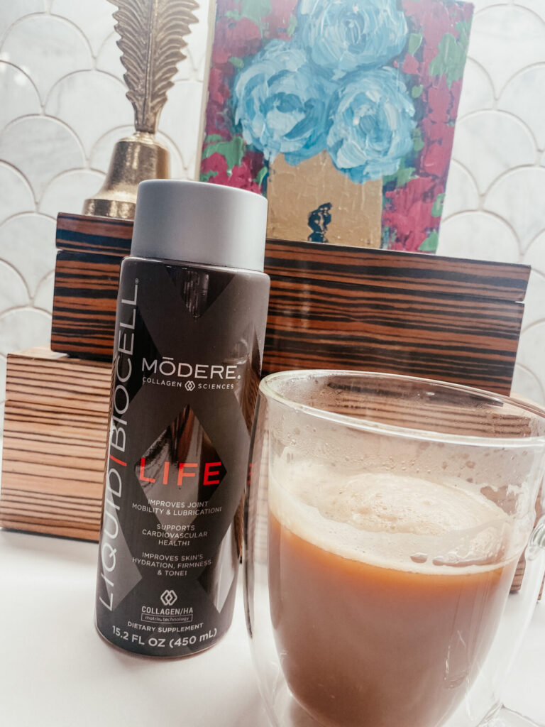 Modere Biocell Liquid Collagen | Collage is the protein our body relies on, and helps to improve hair, skin and nails as well as joints, ligaments and tendons–great for muscle recovery! I love this liquid formula, as it absorbs into the body and is far more potent than powder… just 1 TBSP each day and it tastes delicious. You can save $10 off your first purchase as well [discount applied once you get to checkout]